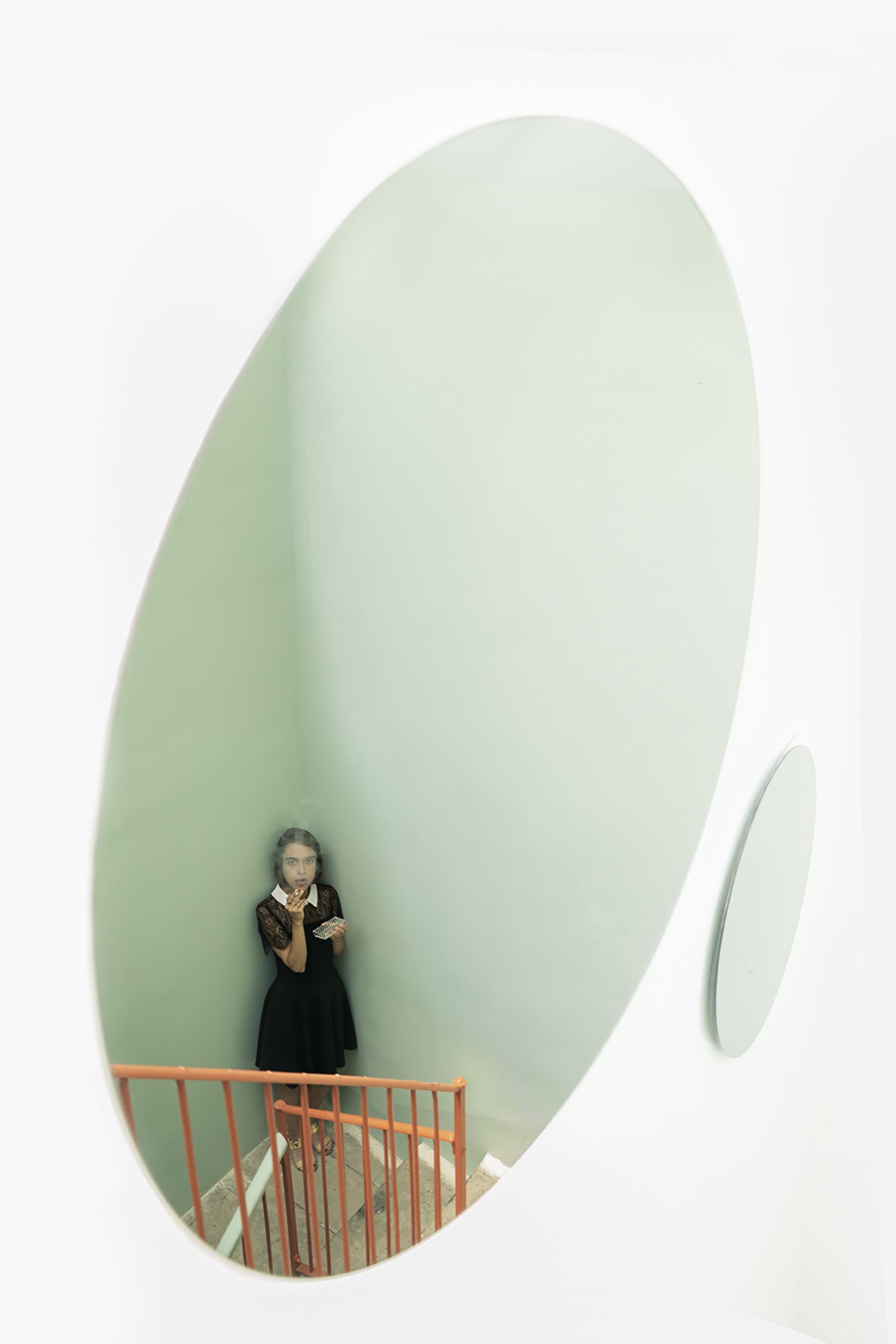 The use of mirrors and reflections highlights the artist's unstable self-perception and compromised understanding of reality. The technical and color choices used create an atmosphere of isolation and solitude, with a strong sense of judgment and external observation. The use of neutral colors and minimalist compositions conveys a sense of apparent calm, contrasting with the internal emotional turmoil typical of borderline personality disorder.