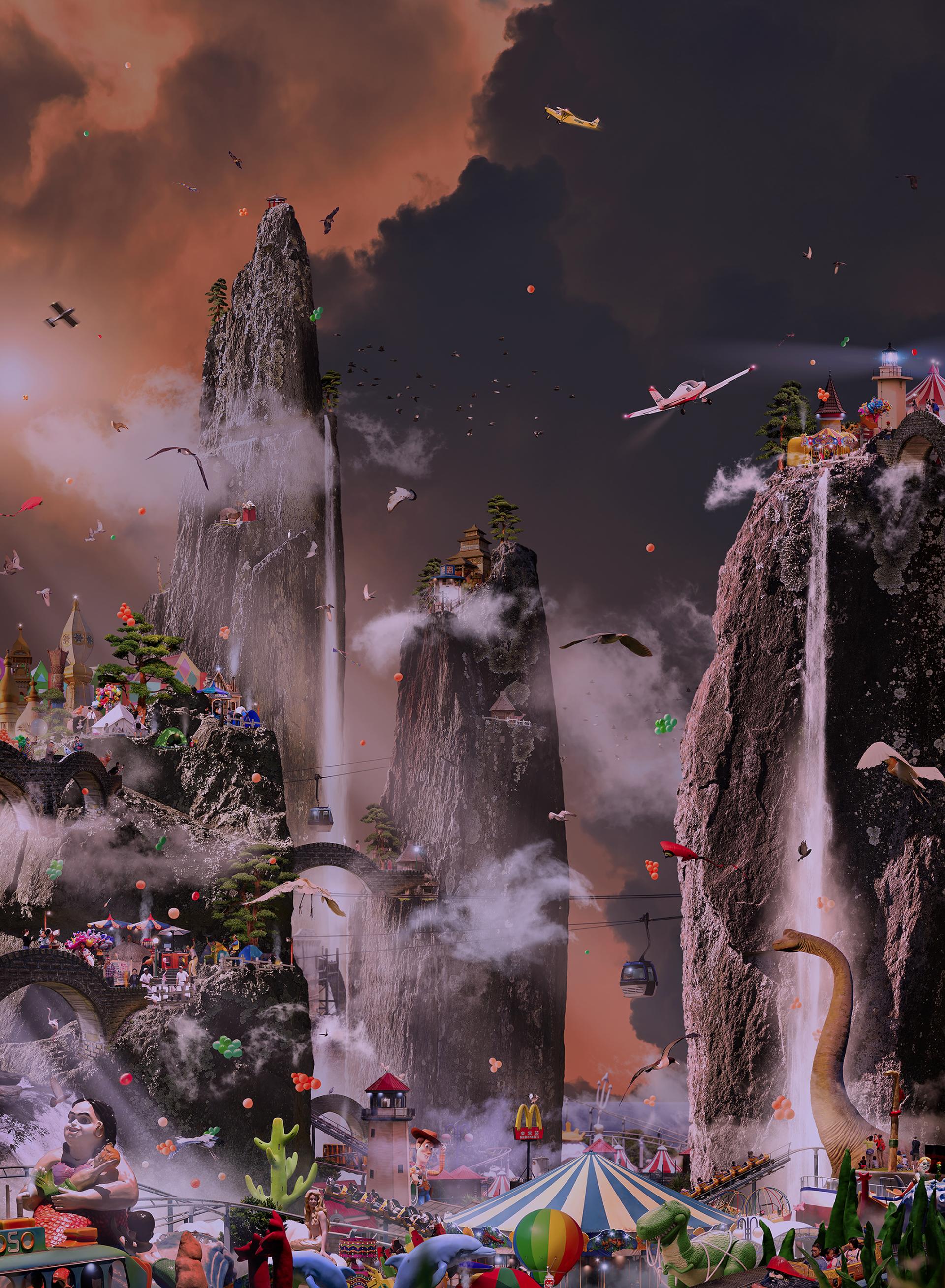 My current body of work explores surreal landscapes and post-photographic aesthetics, rendered through evocative, painterly compositions that serve as artistic playgrounds for experimentation. The Enchanted Joyland - Elysium-I reimagines traditional notions of poetic fantasy and escapism. By blending the familiar with the fantastical, this composite photograph evokes a sense of wonder and curiosity, encouraging viewers to immerse themselves in the imagery and uncover its many layers of meaning. The use of vibrant colours and intricate details draws the viewer in, inviting closer examination of the composition's various elements. The joyland emerges from internal and surreal landscapes, reflecting illusions, fantasies, and Eastern aesthetics. Viewers can appreciate in detail how I manipulate the enchanted image between photographic realism and pictorial poetics.
