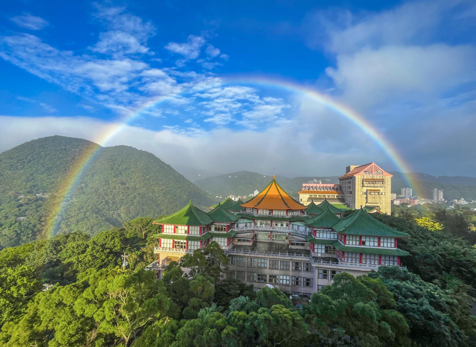 From October to January each year, Yangmingshan in Taipei enters its “rainbow season,” during which a rainbow may appear on average once every 3.6 days. Chinese Culture University, located on Yangmingshan, holds a Guinness World Record for the longest observed rainbow, lasting 8 hours and 58 minutes. When rainbows are set against the backdrop of traditional Chinese-style architecture on campus, they further highlight the beauty of the buildings.