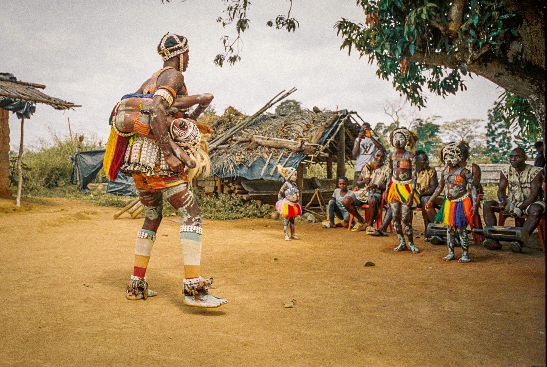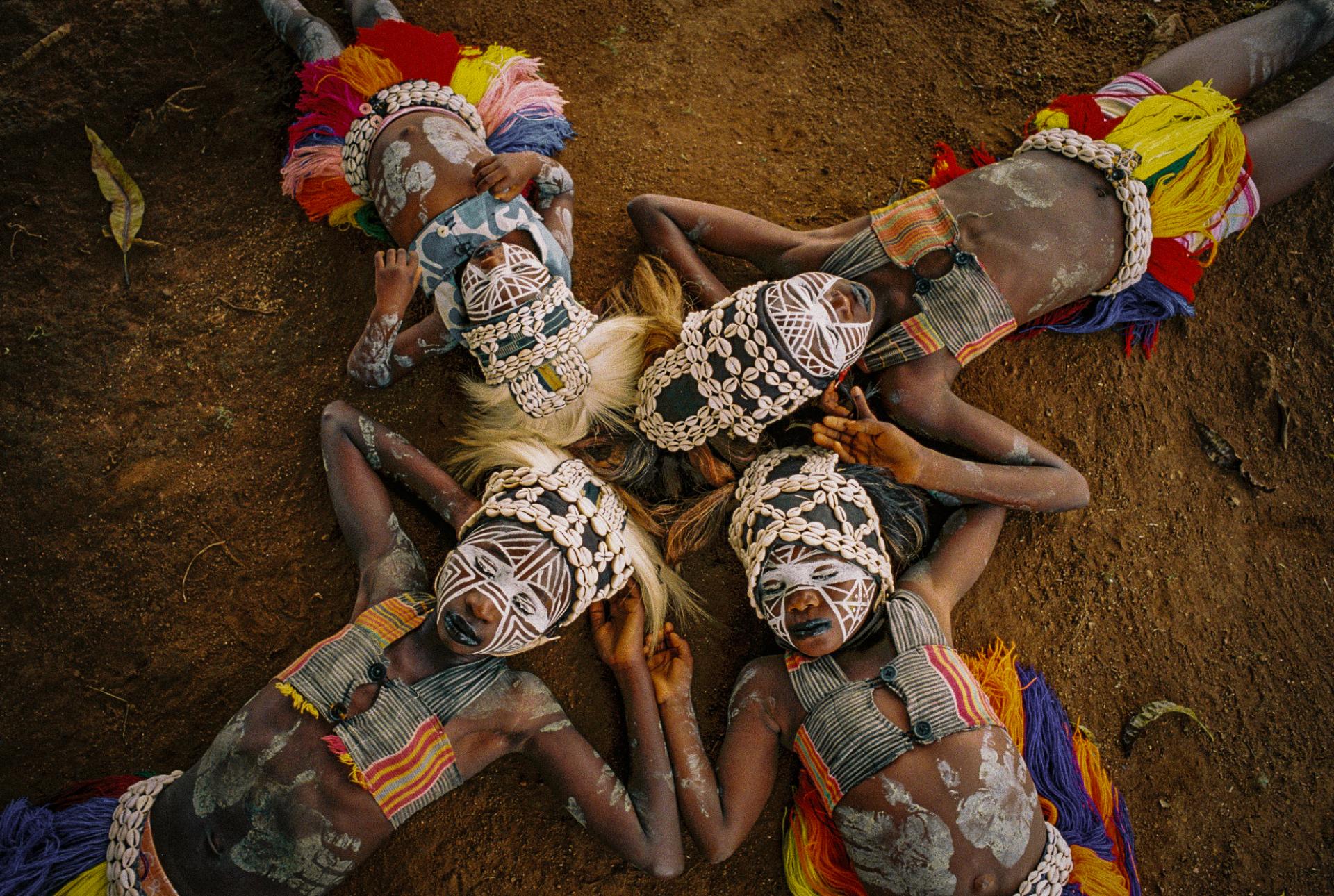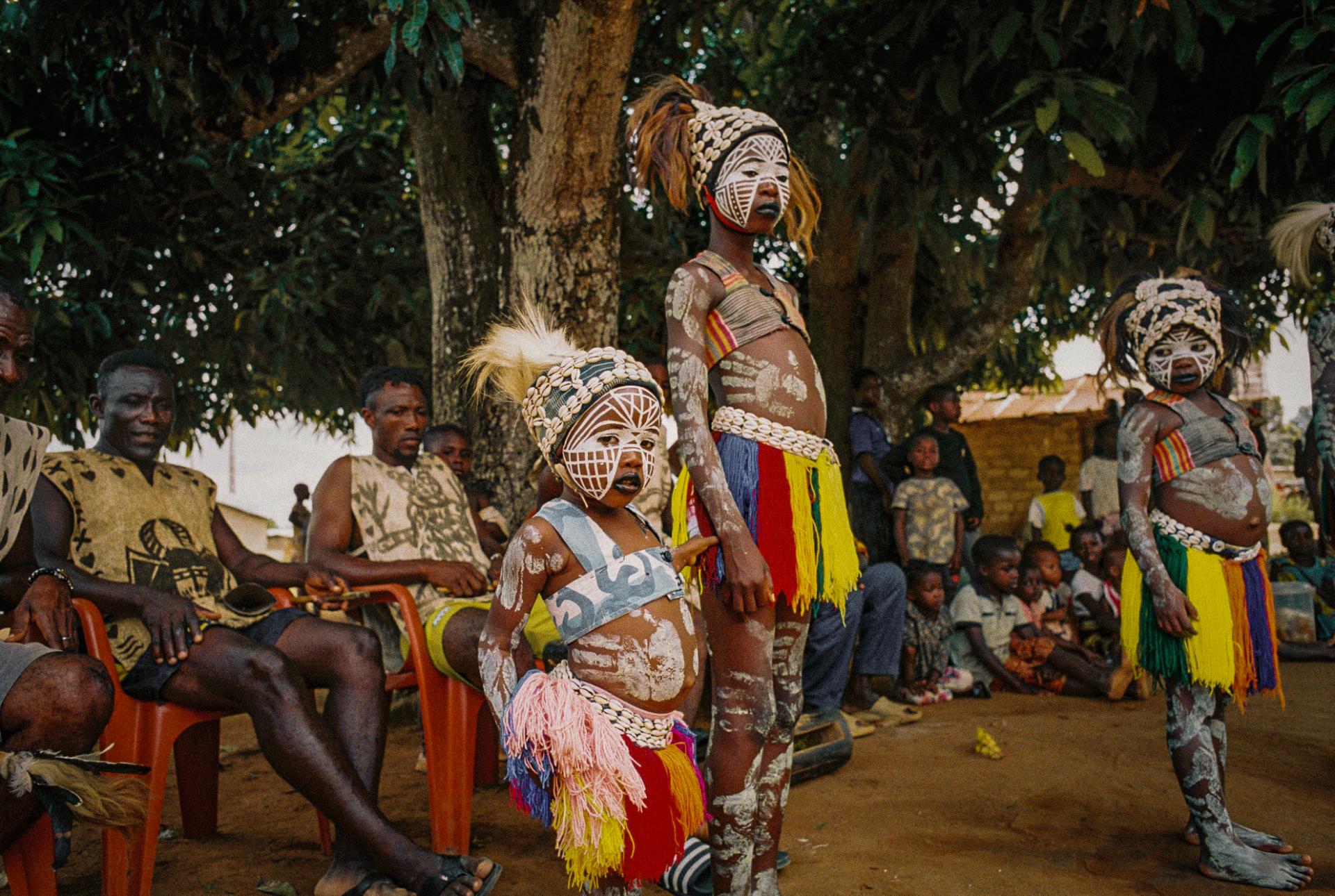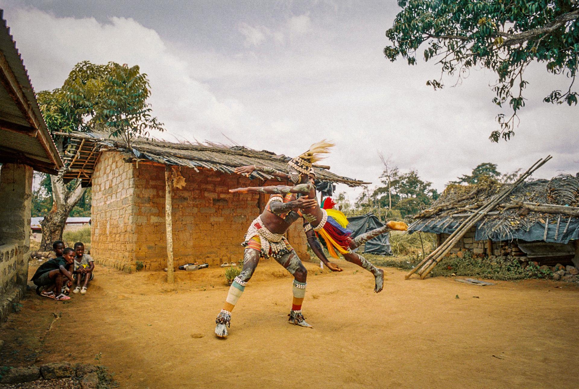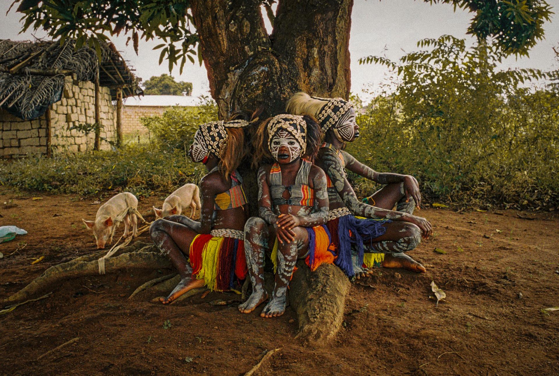 Young Guéré girls protect the village by the animal spirits of the forest, particularly snakes. The so-called snake girls begin their initiation at the age of three. The community's shaman 'Simbo' teaches them to capture the essence of nature, in the form of the soul of a snake. Moreover, the girls were trained and drilled to perfect the technique of the snake dance - dance of the Jugglers. They are neither allowed to speak, communicate, nor to smile. During the dance the girls mimic snake movements, supposedly while in trance, and demonstrate spiritual protection. When they turn 10 years old, their relationship with this brotherhood ends, and they are released to live a normal life. The snake girl ritual is usually celebrated in communities that live in isolated and difficult-to-access regions in Ivory Coast and Liberia.