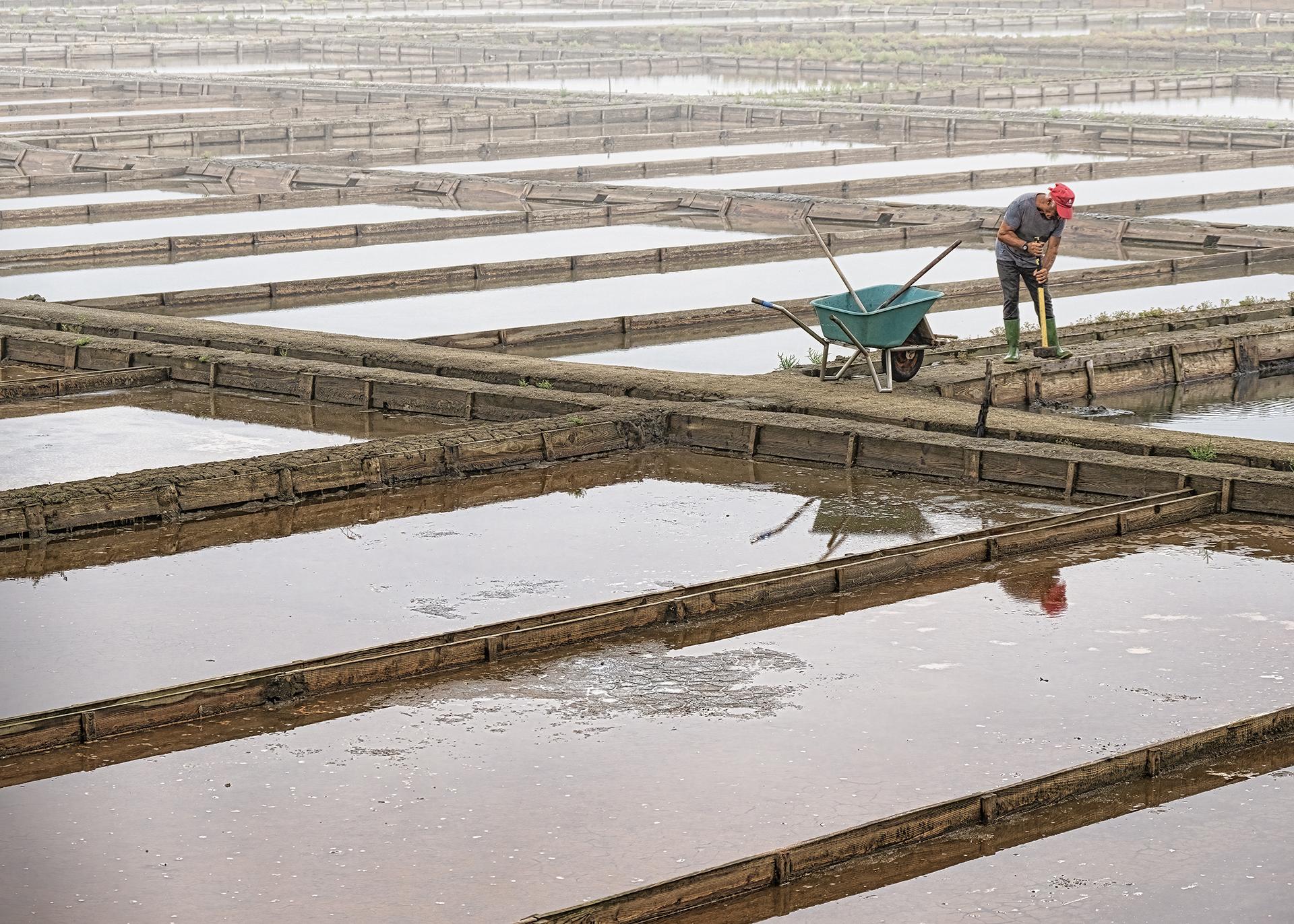 A system of ditches, channels, tanks and evaporation ponds to get salt in Aveiro, Portugal.
