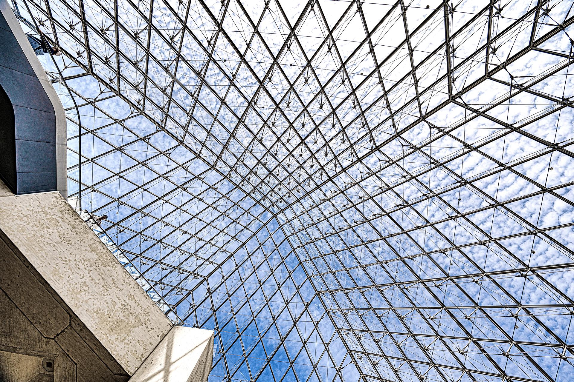 Interior entry space at the Louvre, Paris, France. I.M. Pei, architect.