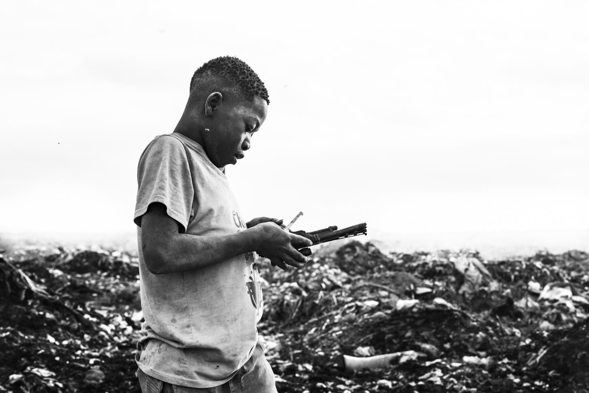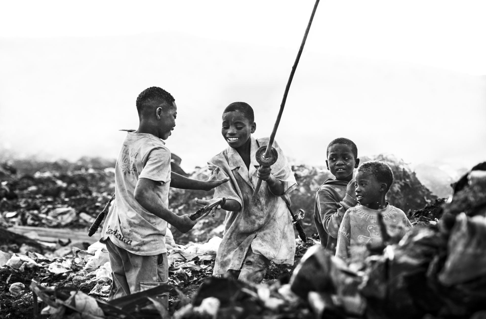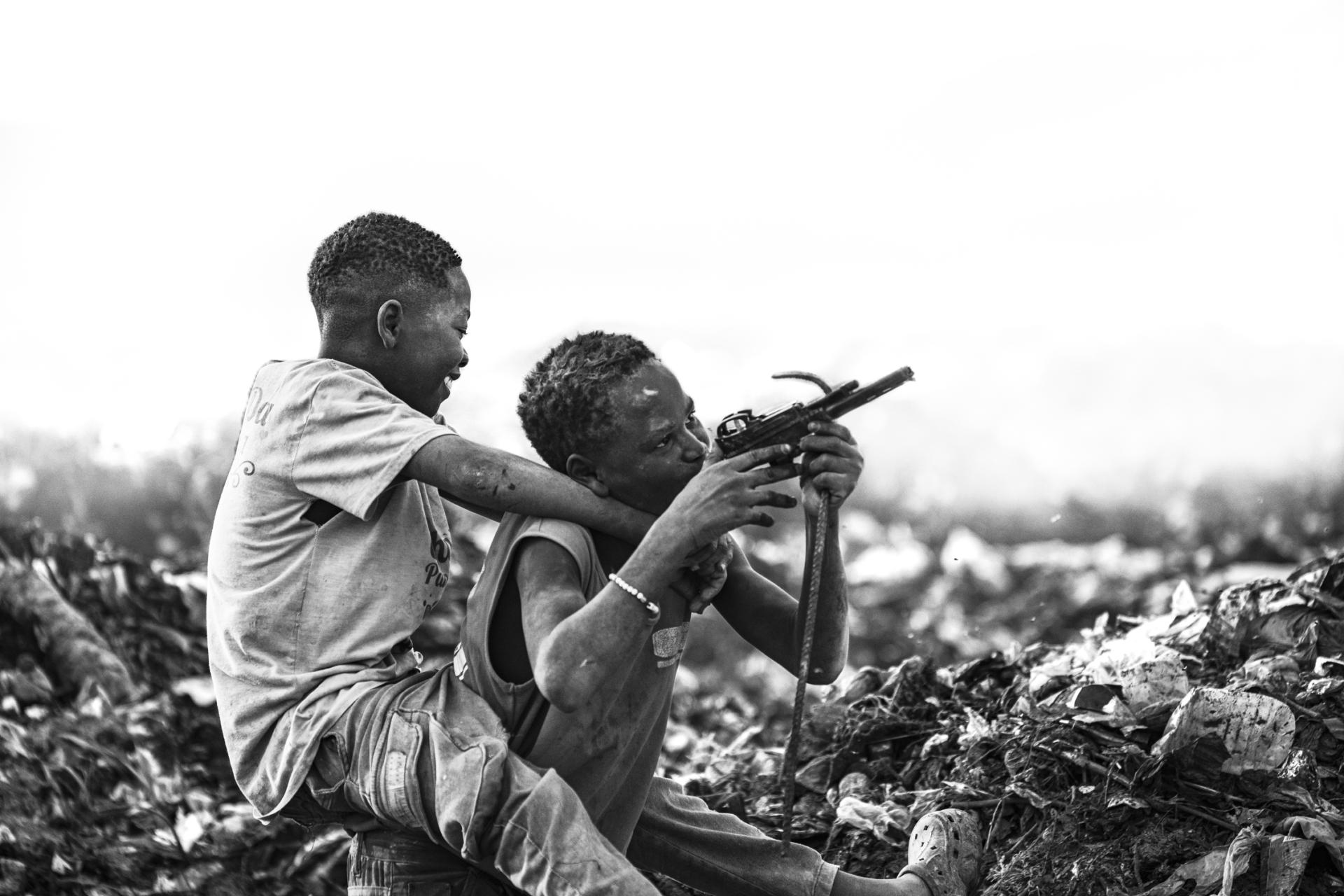Despite living in a grey and desolate world, they are still just children. At the end of the day, this is their last chance to find something that will make them smile, besides the games they invent themselves. Almost everything they find is interesting to them because they have nothing else. They eagerly rummage through smouldering piles of waste, looking for the most insignificant things that they can turn into toys with a bit of imagination and ingenuity. But today was a special day! One of them found a broken toy gun that had survived the fire, and the dumpster quickly flooded with smiles and new games. This was the day a gun fired bullets of pure joy. It was also a day when these children showed us all that stories that begin with guns can end with smiles, too.