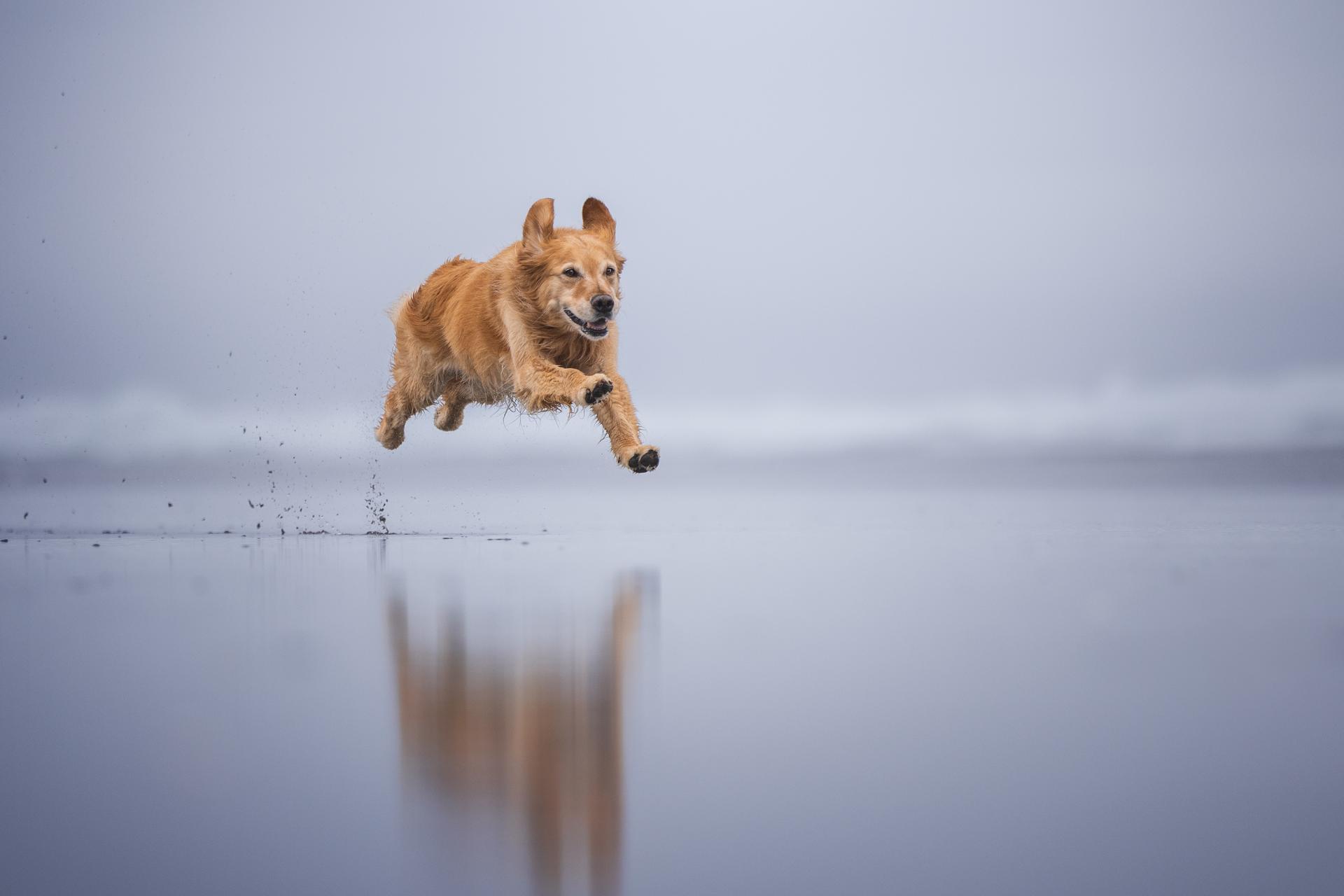 For this photo, I wanted to capture a golden dog on a gloomy day, in motion. The goal for me was to capture the dog at the perfect timing to where she wasn't touching the ground to show how quickly she was running.