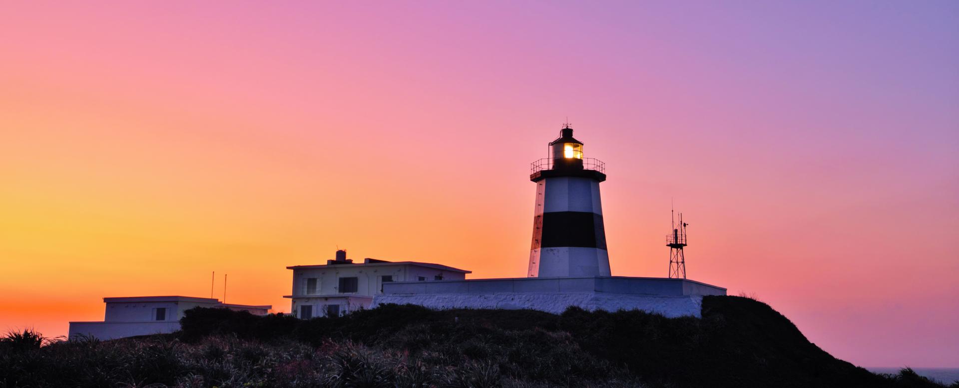 Fugui Cape Lighthouse is located at the northernmost part of Taiwan. Near the lighthouse there is a fishing port. The nearby fisherman’s market sells fish and seafood for sightseers. The lighthouse shows gorgeous colors of yellow, orange, and purple at twilight. The lighthouse is also an attraction for tourists.