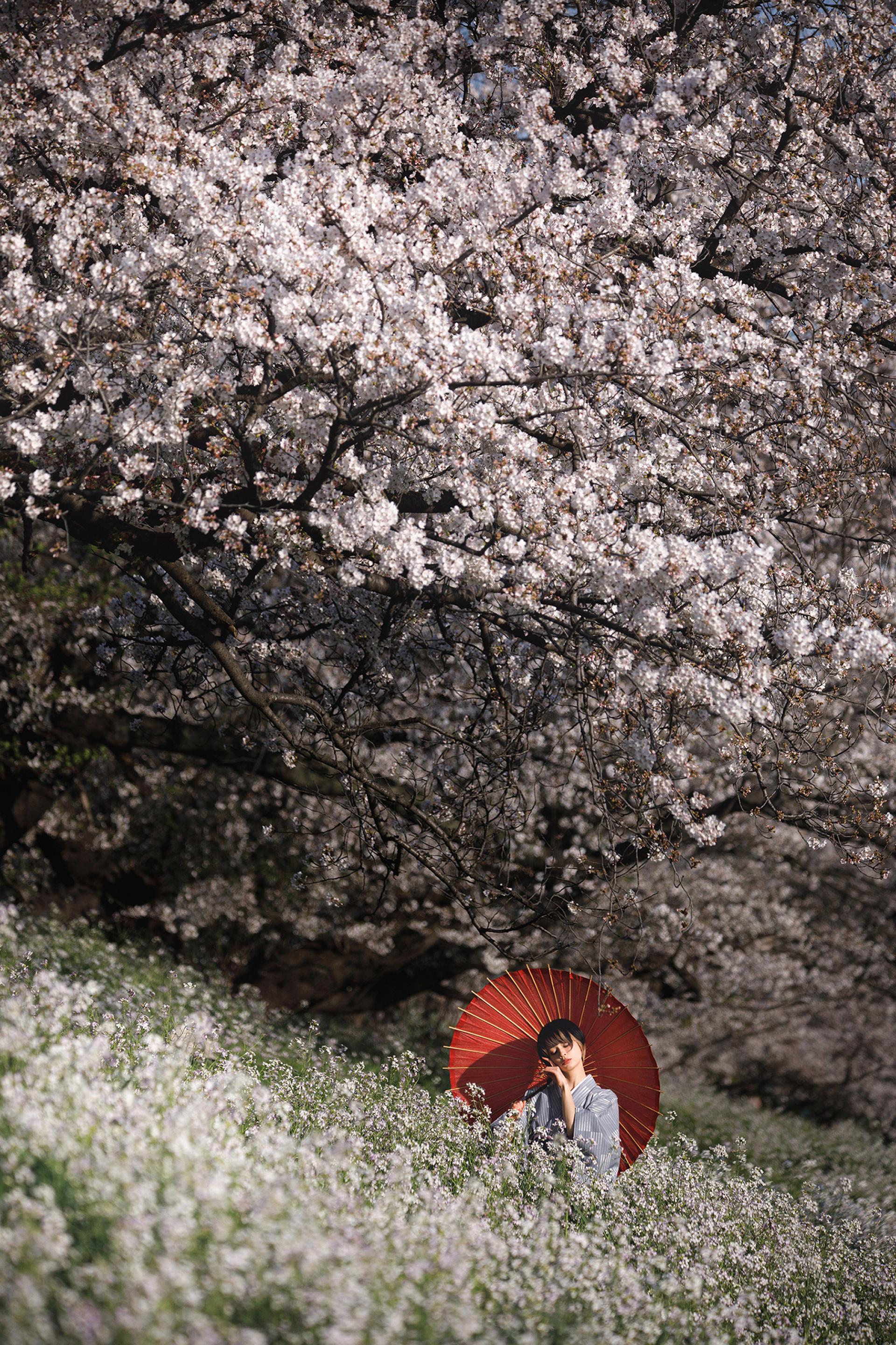 I captured the essence of “Japanese spring” through this woman wearing a kimono and holding a traditional Japanese umbrella.