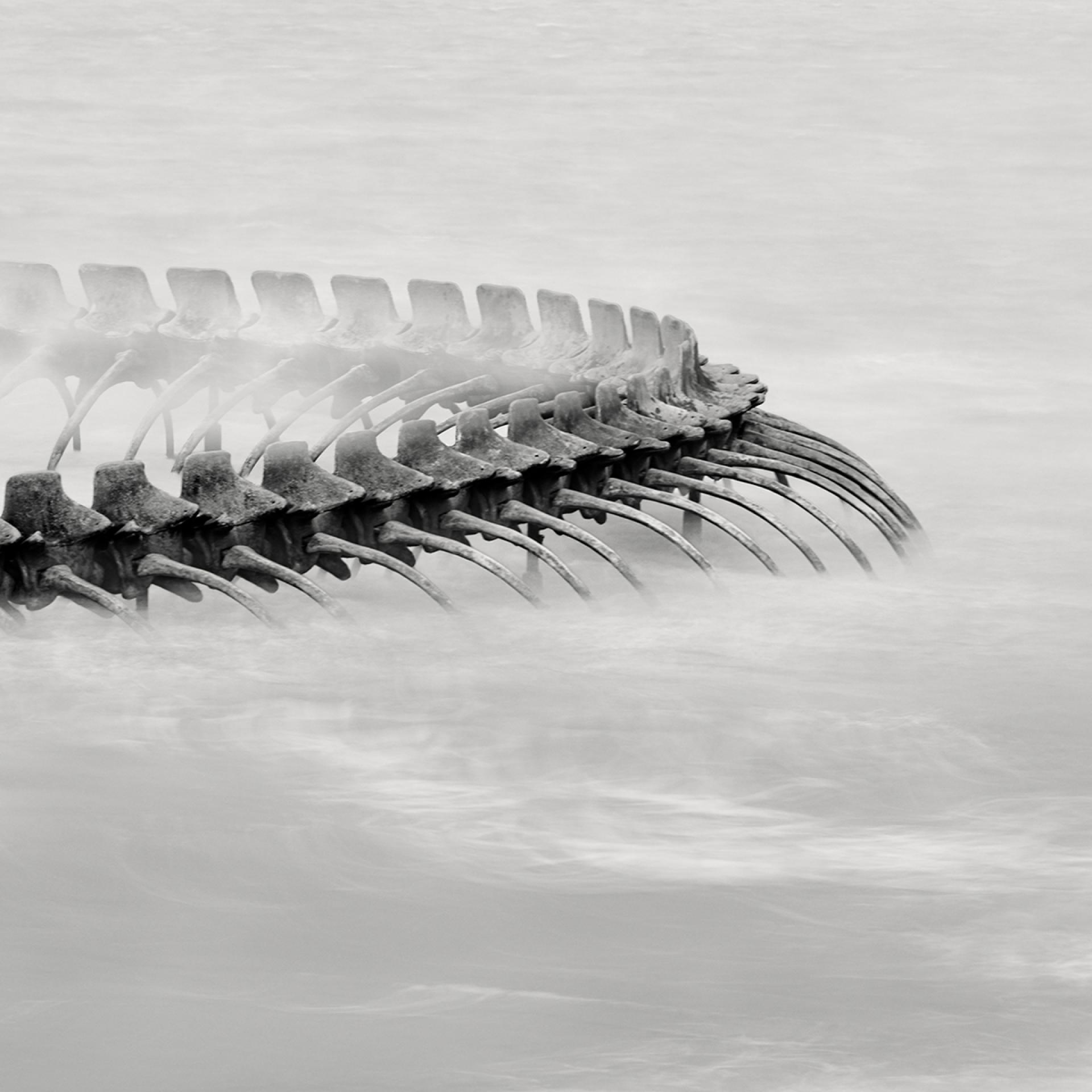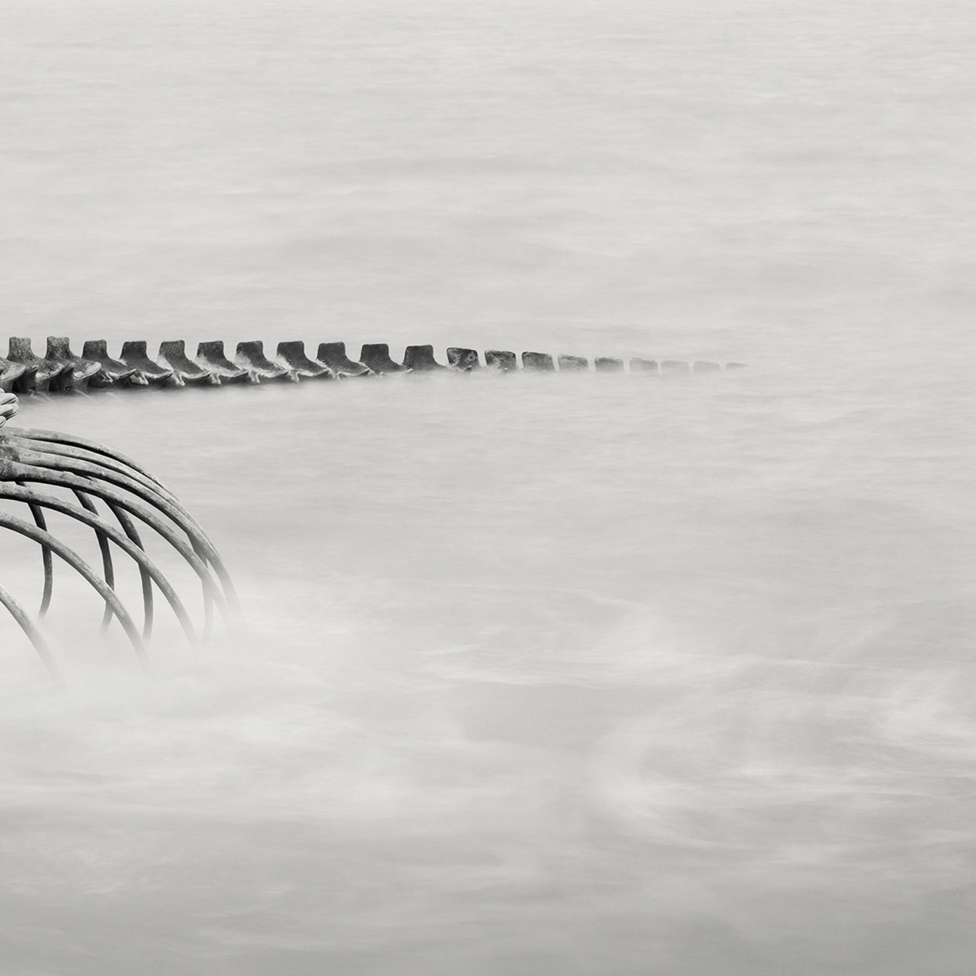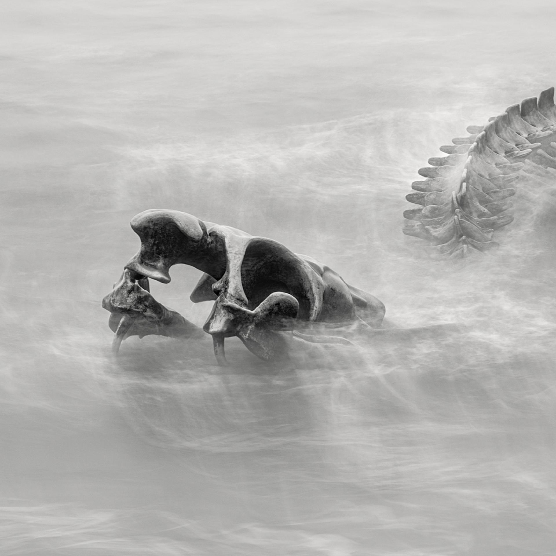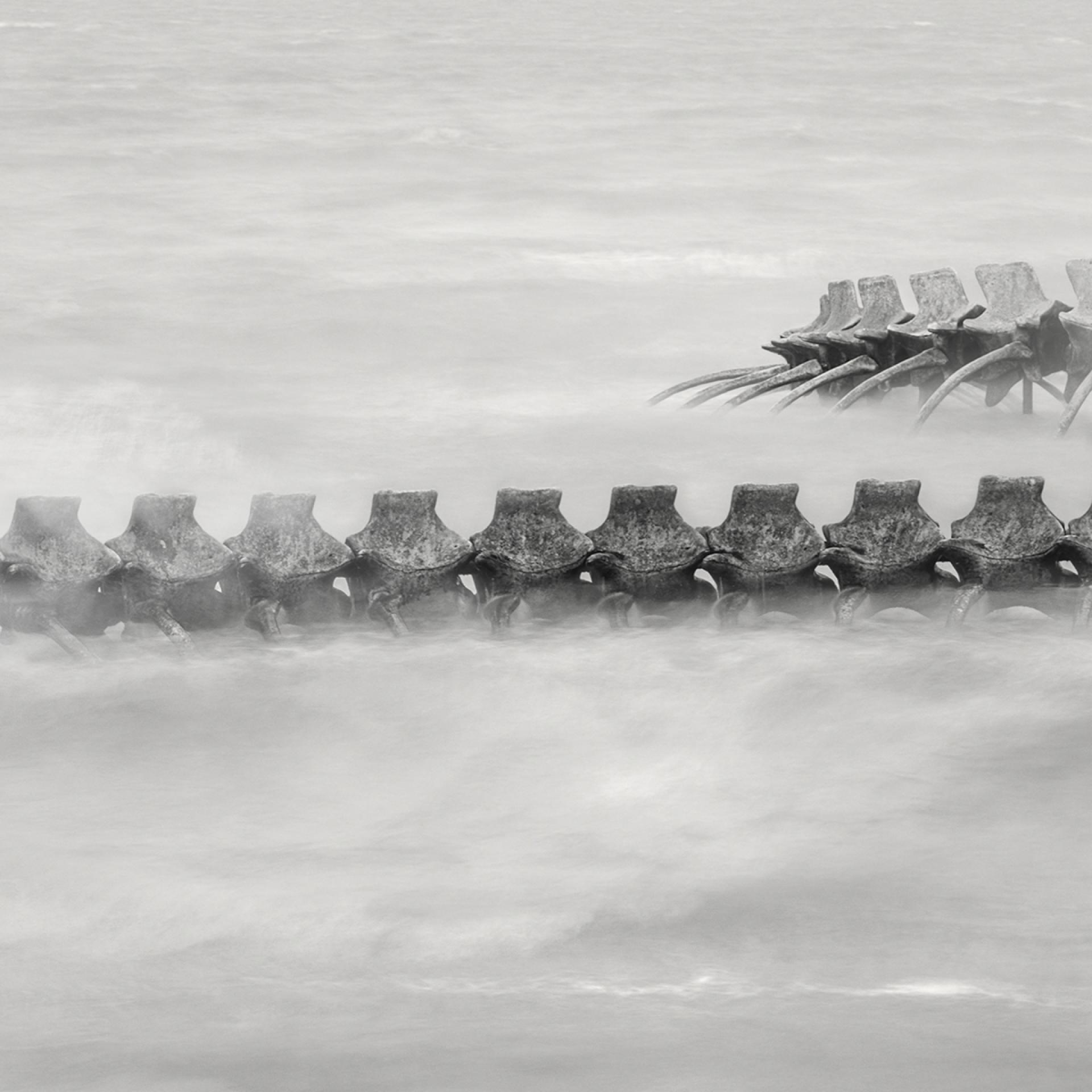 Through photography, I wanted to transform this impressive, gigantic and static sculpture into a dramatic, life-filled surrealistic snake skeleton. My goal was to create a spectacular polyptych, full of surrealistic drama. The implementation of the idea required a specific ocean swell.