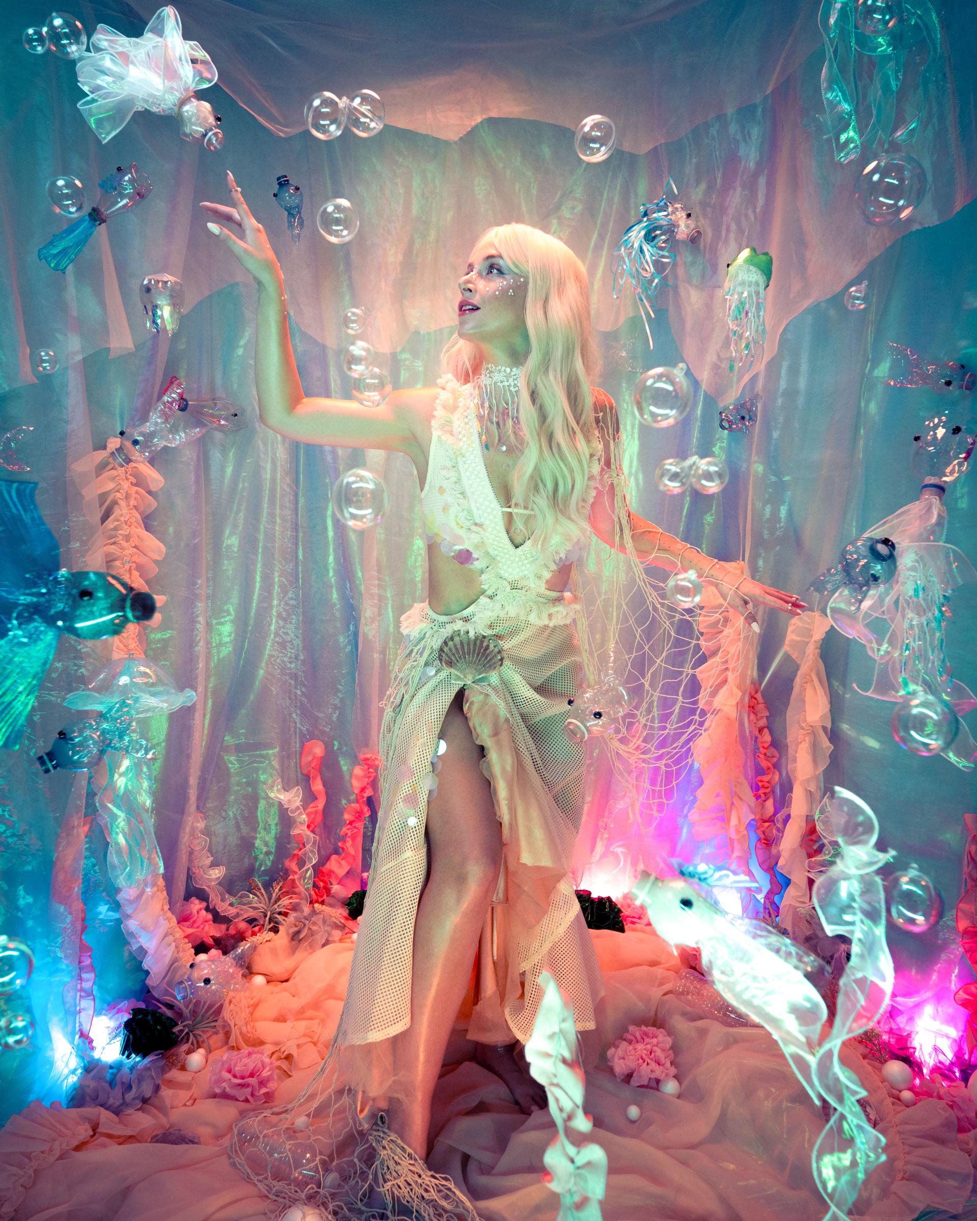 The project unfolds like a diary made of images. It reveals an evolving conversation between identity, image culture, and time. Each photograph is a small world, often humorous or fragile, where beauty, fatigue, and control coexist. Duplain designs her sets by hand, using recycled materials or 3D-printed elements, combining craft and technology with a sense of play and precision. The result is a collection of images that feel at once intimate and theatrical, deeply personal yet reflective of a broader social reality.
