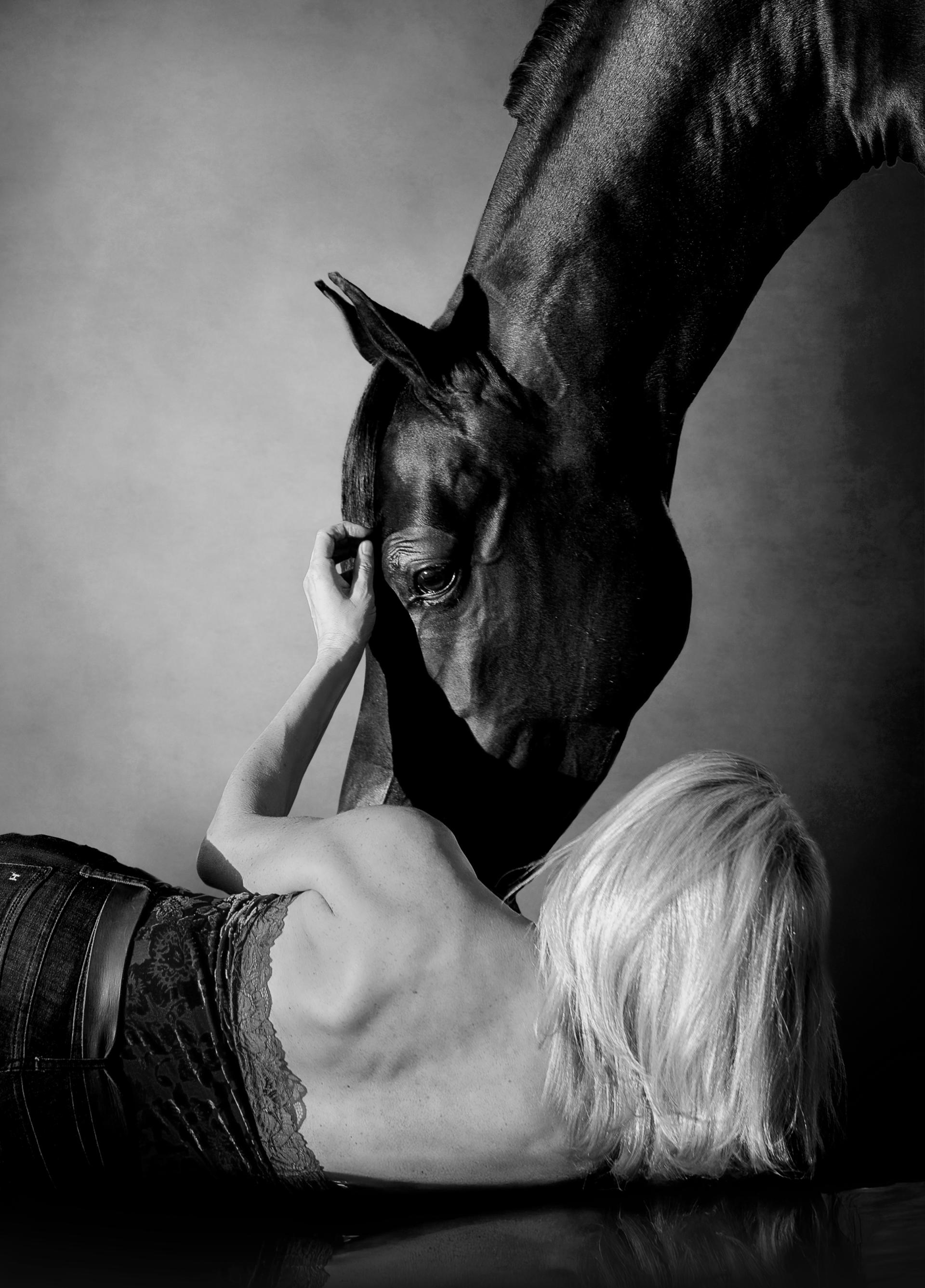 That sense of belonging is deeply reciprocal. In this moment, Kim lies vulnerable on the ground, her outstretched arm inviting her mare to step closer and share the stillness with her. What unfolds is a quiet yet powerful exchange—an intimate expression of trust, connection, and mutual understanding that transcends competition.