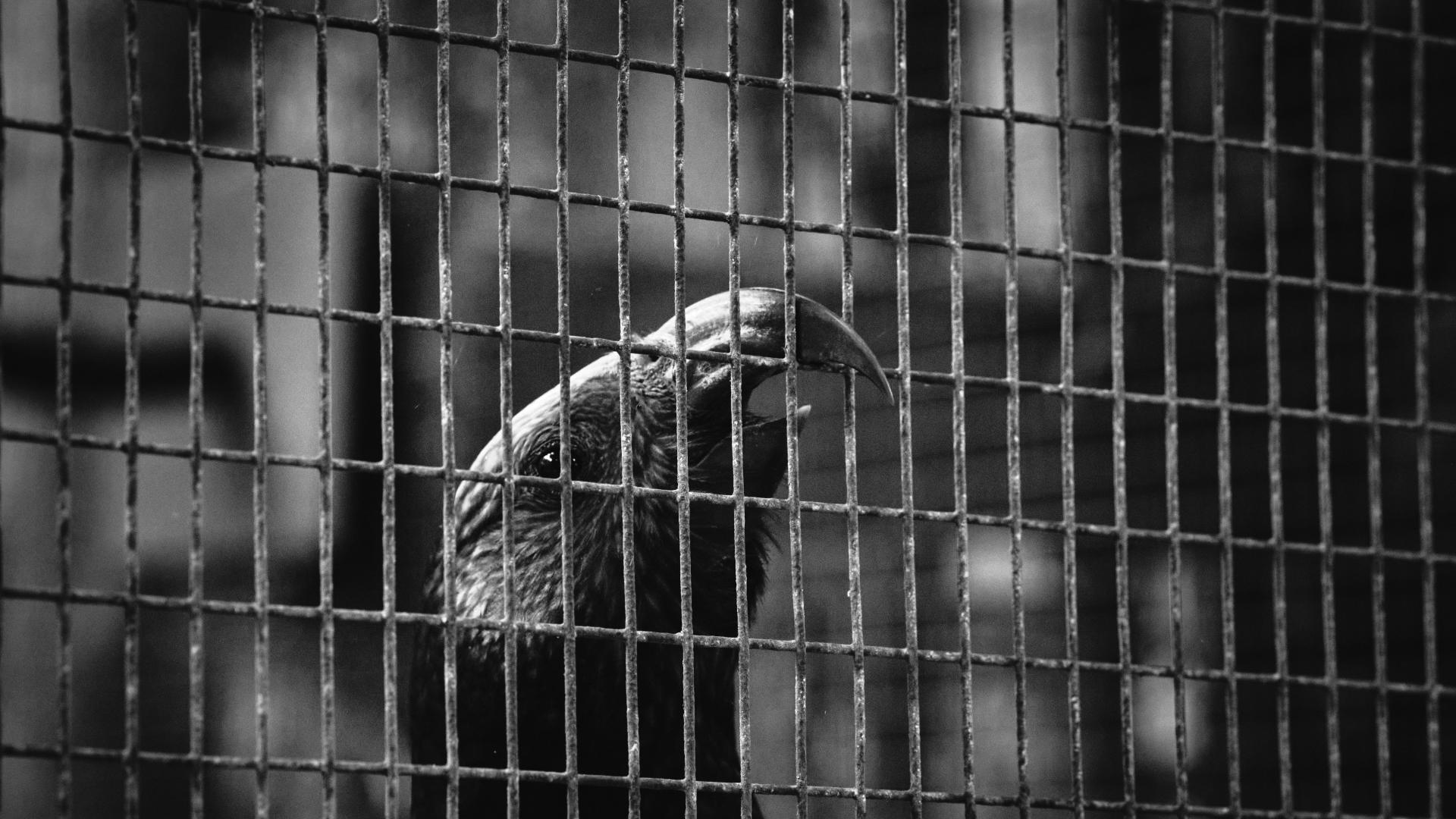 This black and white photograph foregrounds the structure of captivity. The wire grid dominates the frame, its rigid geometry interrupting the kākā’s form and establishing containment as the central subject. The bird is encountered through the bars, not beyond them, positioning restriction as the primary condition of seeing. The kākā’s eye remains visible, alert, aware, and steady. There is no overt distress. Instead, the image holds a sustained tension, a quiet consciousness shaped by enclosure. The emotional register is deliberately restrained, allowing the photograph to operate through pause and proximity rather than sentiment.