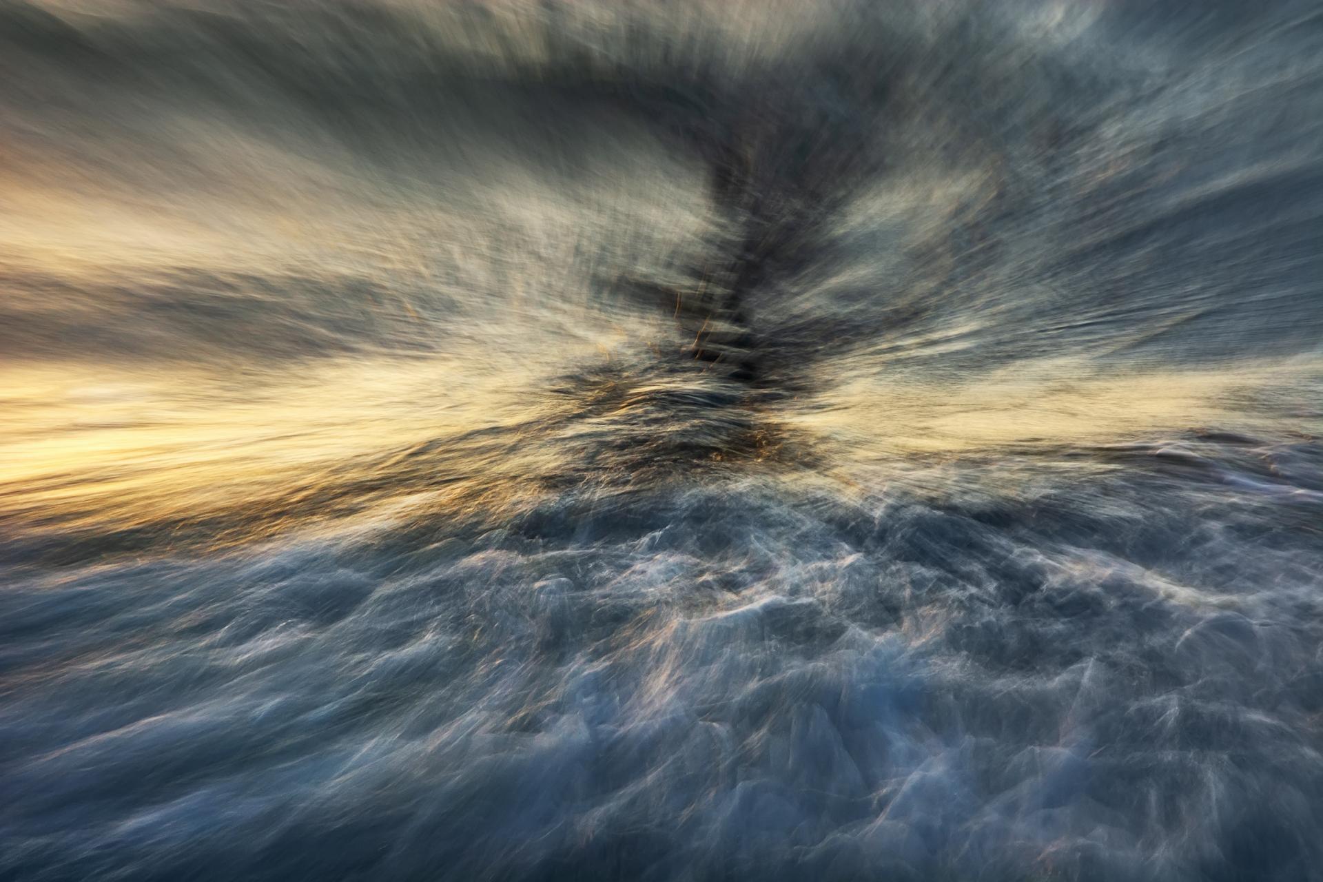 This photographic series explores nature as a living, unstable force at the threshold between beauty and destruction. The work is created through a combination of multiple exposure, photographic compositing, intentional camera movement, and subsequent digital post-production. Within the images, the landscape dissolves into shifting structures of light, color, and time; the fixed horizon disappears and space becomes unstable.