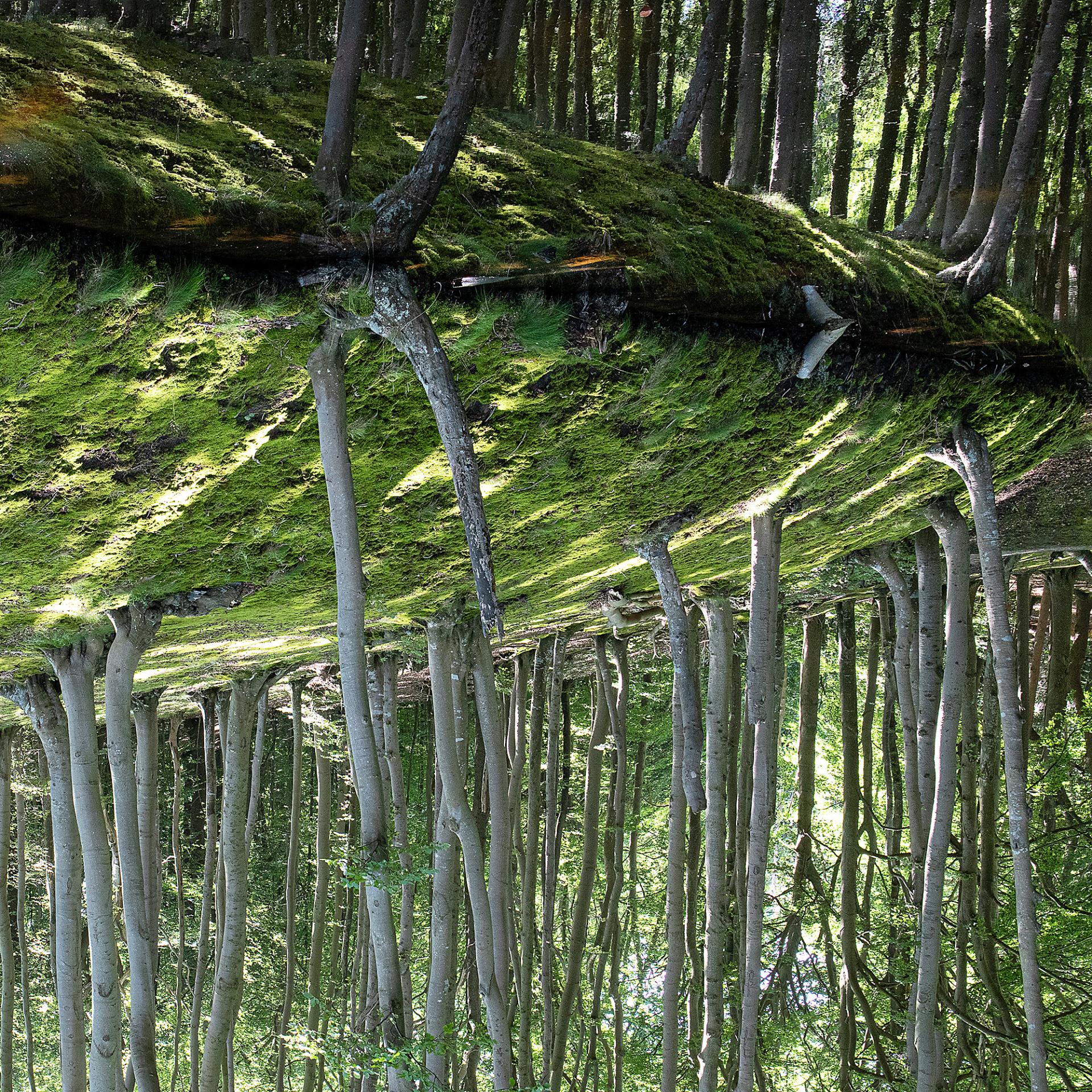 In "Witch's Wood" on the island of Rügen, the artist seeks not a fairytale backdrop, but the precise moment where perception falters. A mirror-still body of water overlays the forest like a second leaf: the reflection above and the physical woods below appear equally valid, disrupting traditional order. Trunks become columns and the forest floor transforms into a ceiling—a visual puzzle that briefly "bewitches" the viewer’s gaze. Crucially, this effect is achieved entirely in-camera through a single exposure. By capturing the lush, original green of life, the work serves as a silent testament to how easily our worldviews can shift.