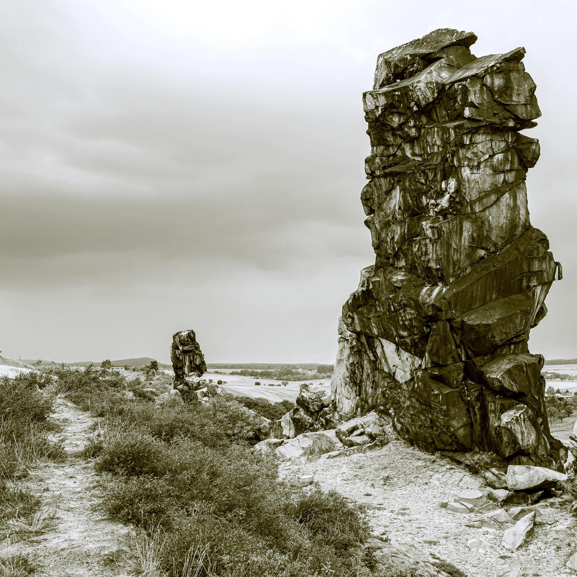 This diptych explores the 'soulscape' as a threshold between the visible and the imagined. Utilising a distinctive metallic palette, the works depict rocks and trees not as mere matter, but as mystical signposts to an 'otherworld'. The series captures a sense of longing and enchanted mystery, while simultaneously reflecting inner wounds and fragmentation. It is a journey to the boundary of memory, where mysterious forms gently take shape, transforming the ruggedness of nature into a vessel for intense inner experience and spiritual transition.