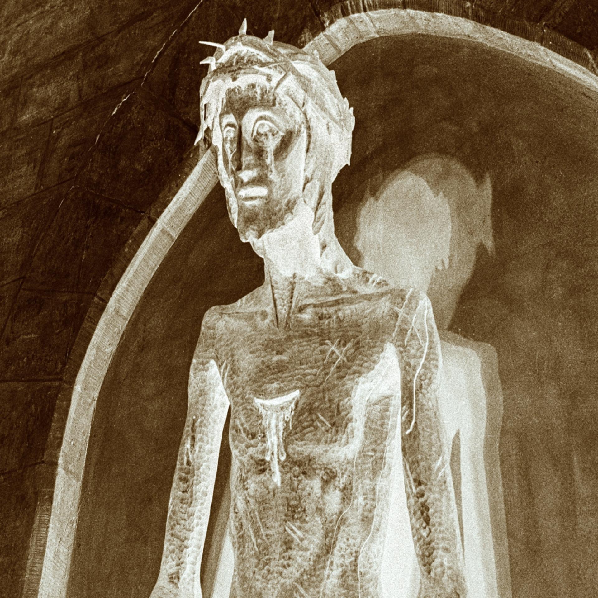 This work approaches human existence under psychic strain. Despite its recognisable Christian iconography, the figure is treated as a universal emblem of the father–son bond and the ache of abandonment: a portrait of a “sacrificed” self, with pain made tangible through the opened chest wound and tearful eyes. Rendered as a negative, the image draws on C. G. Jung’s notion of the shadow—those disowned traits, unmet desires and unresolved conflicts that are often repressed. The luminous body against a dark ground turns the interior outward, making the hidden visible. The figure becomes a vessel for isolation and the search for repair within one’s own biography, entering a psychological space where suffering and insight are inseparable.