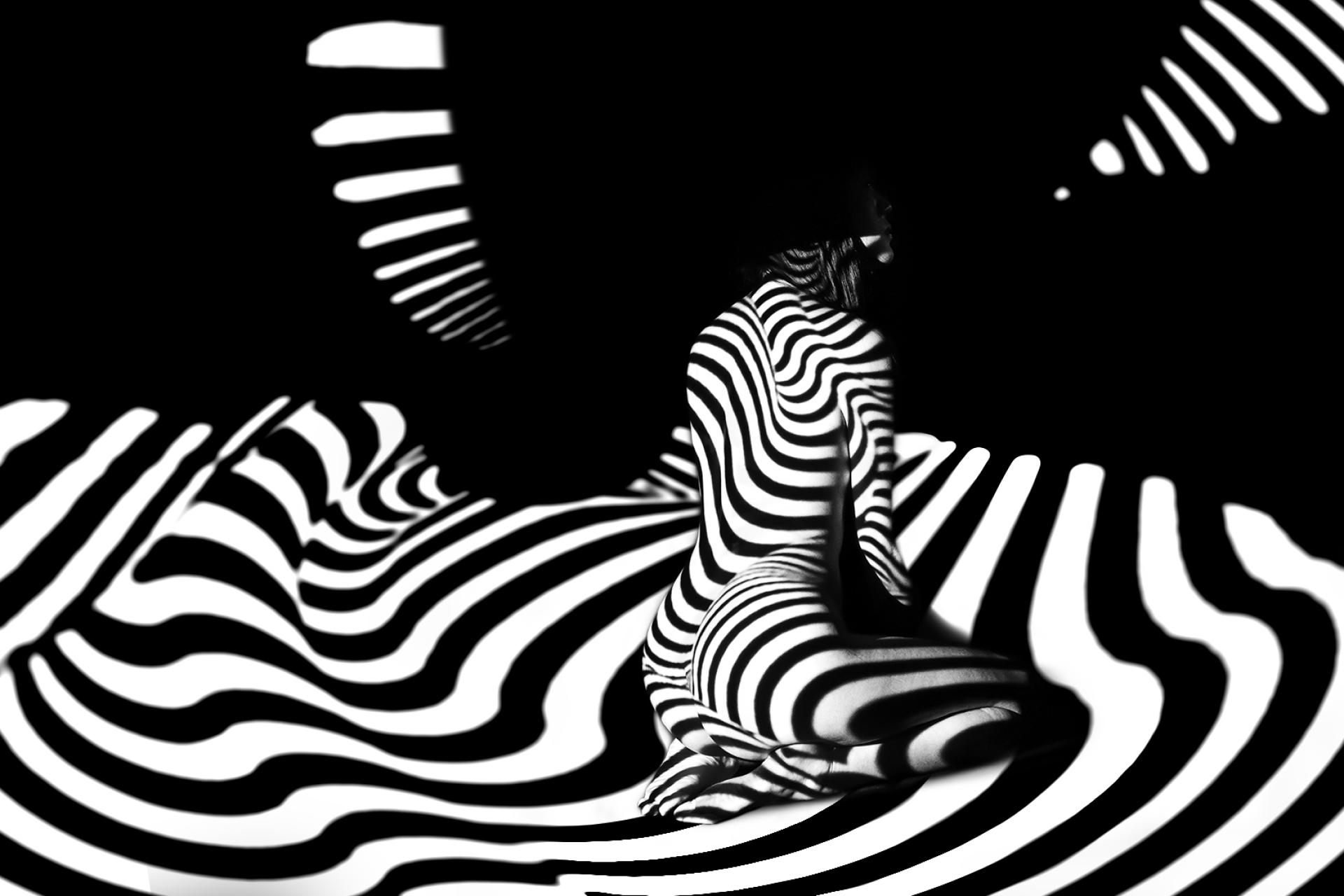 The interplay of light and shadow on the zebra stripes evokes a unique and imaginative feeling.