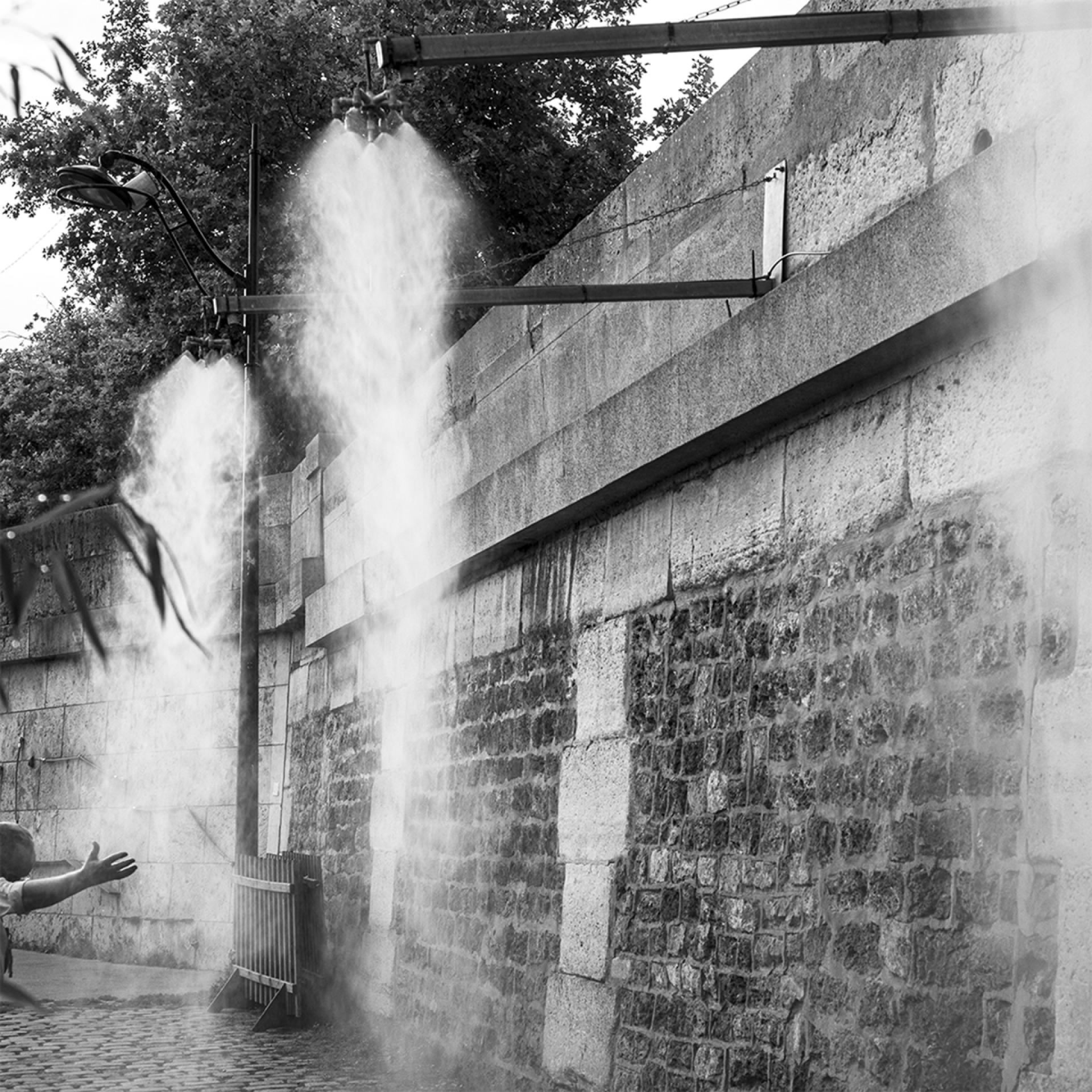 A radical shift in energy occurs in "City’s Thirst" (Street 03). Here, the violent, ethereal spray of water against a stone wall introduces a sense of raw, elemental power into the series. The blurred texture of the water contrasts sharply with the permanence of the masonry, serving as a metaphor for the transient nature of urban experiences.