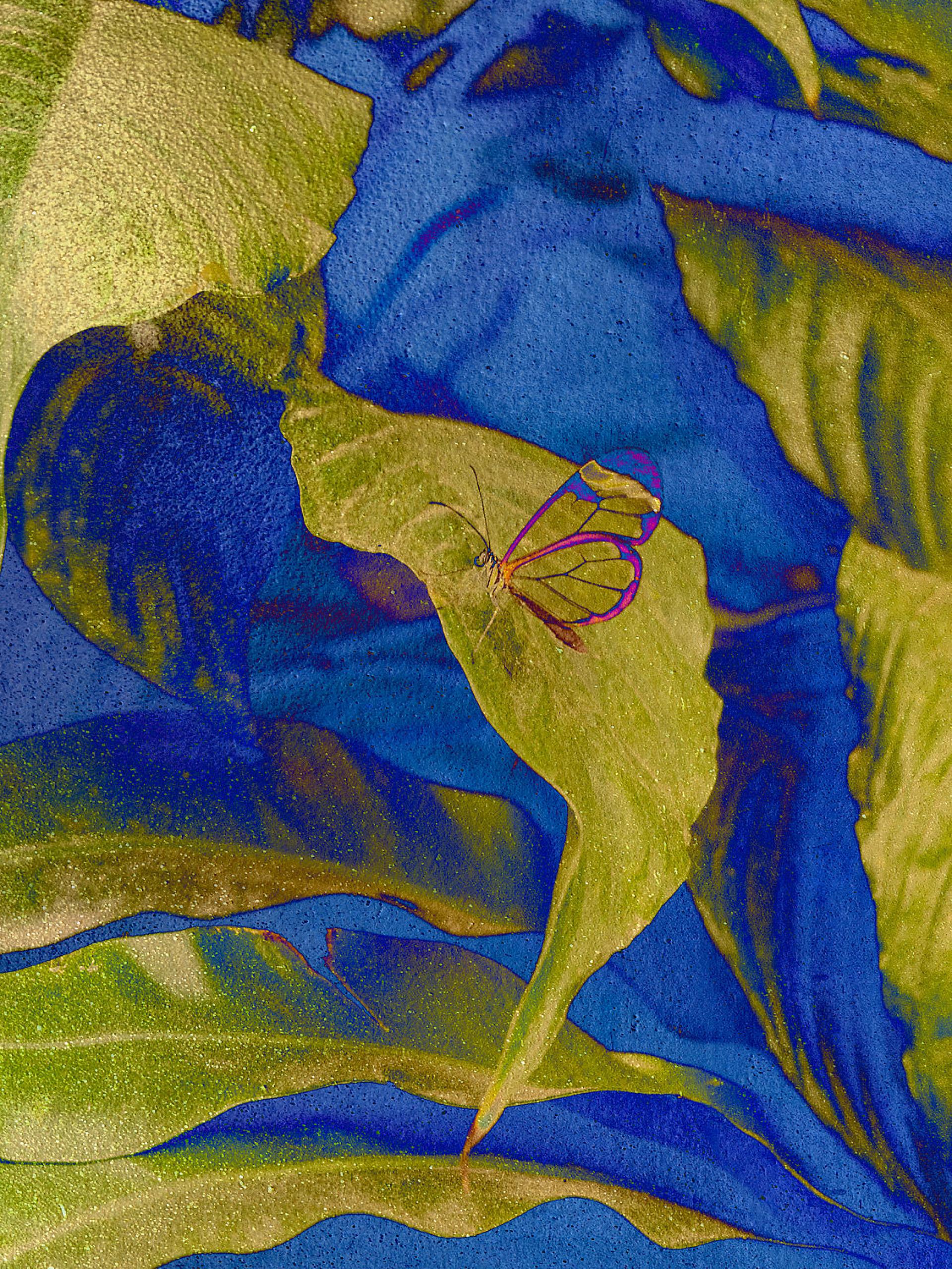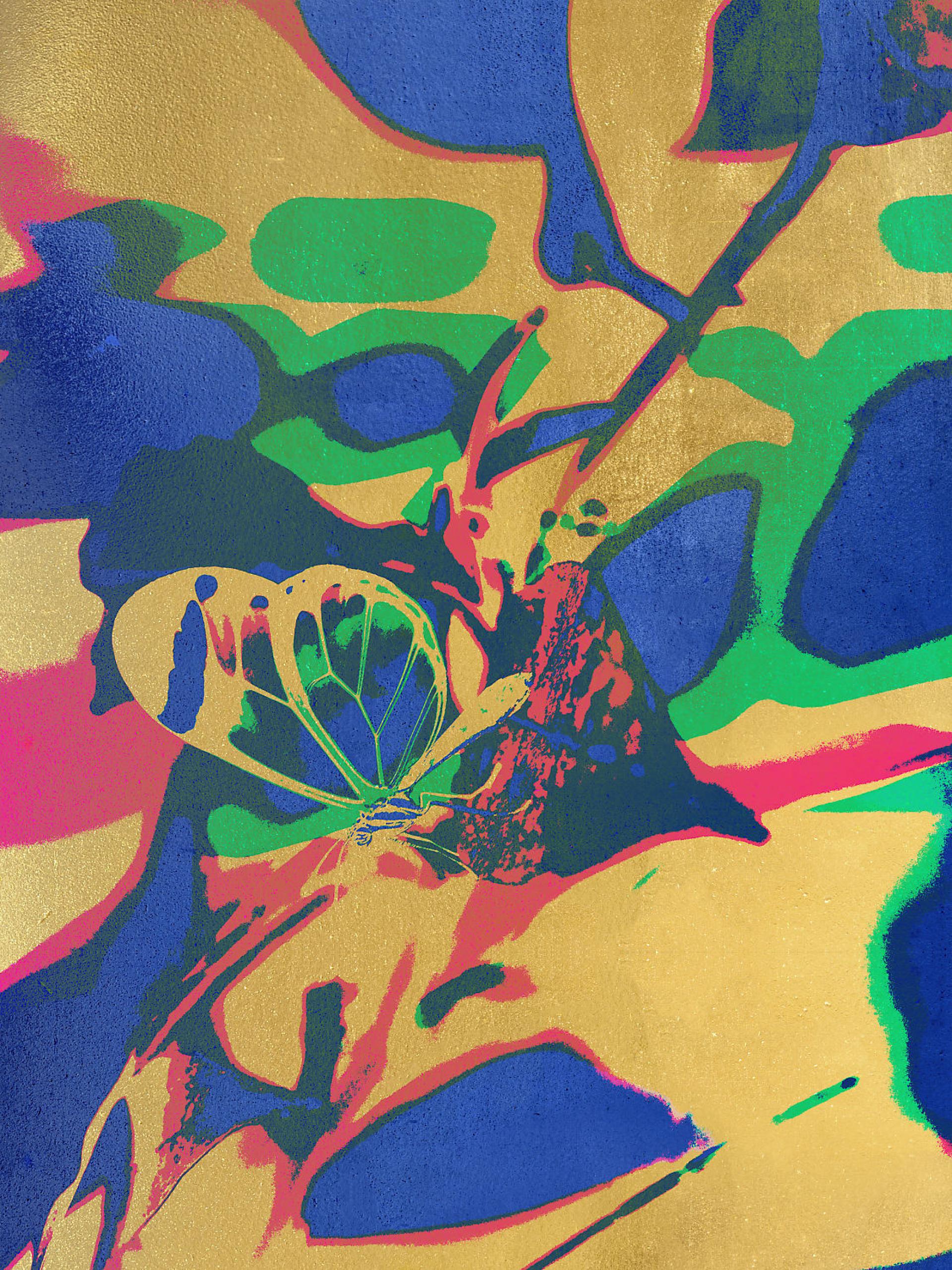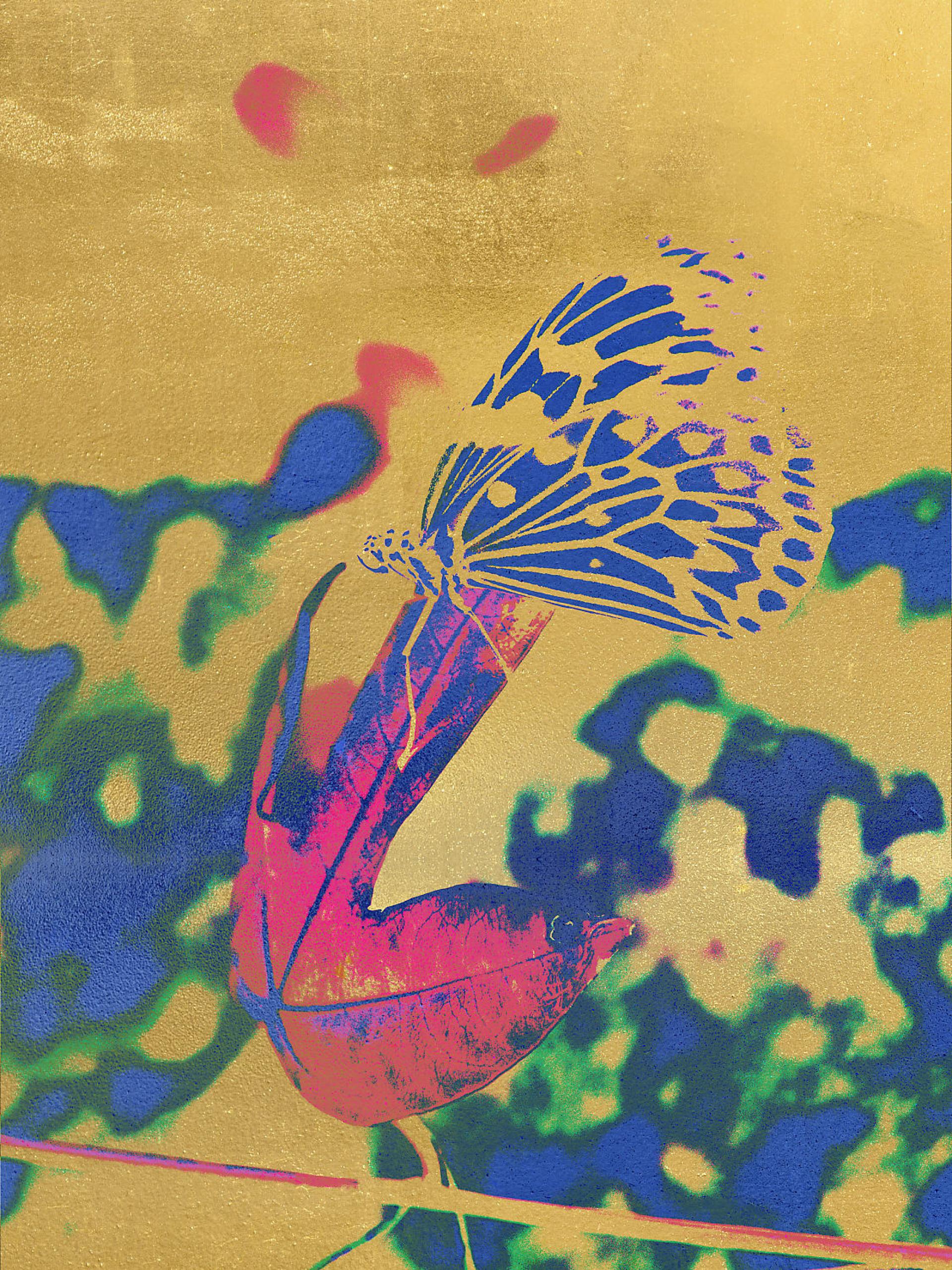 Gold Butterfly Echoes of Transformation explores the fragile interplay between memory and nature, where fleeting moments are preserved as golden echoes. Inspired by butterflies flowers and leaves, this series transforms reality into dreamlike abstractions using digital manipulation color inversion and layered textures.