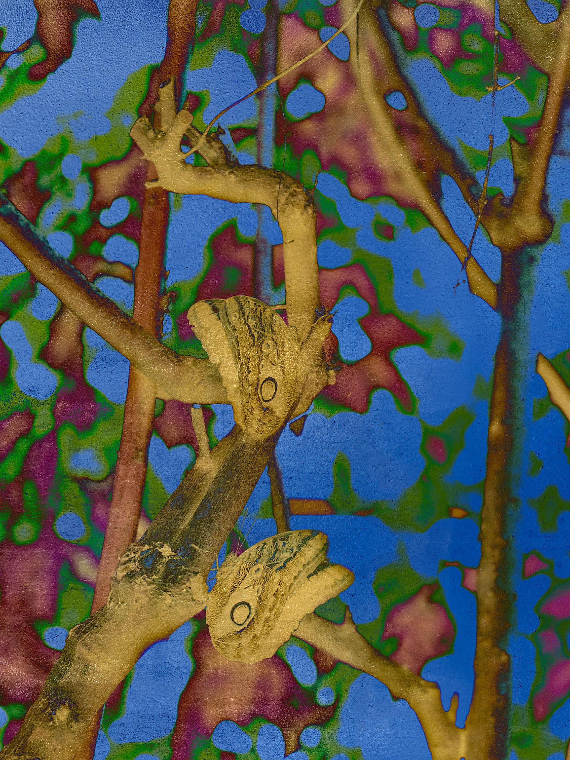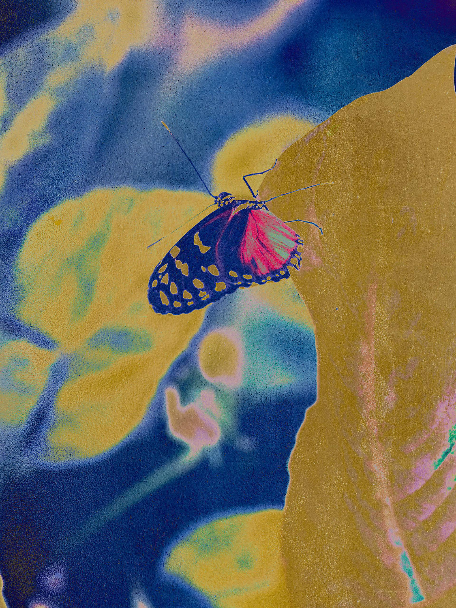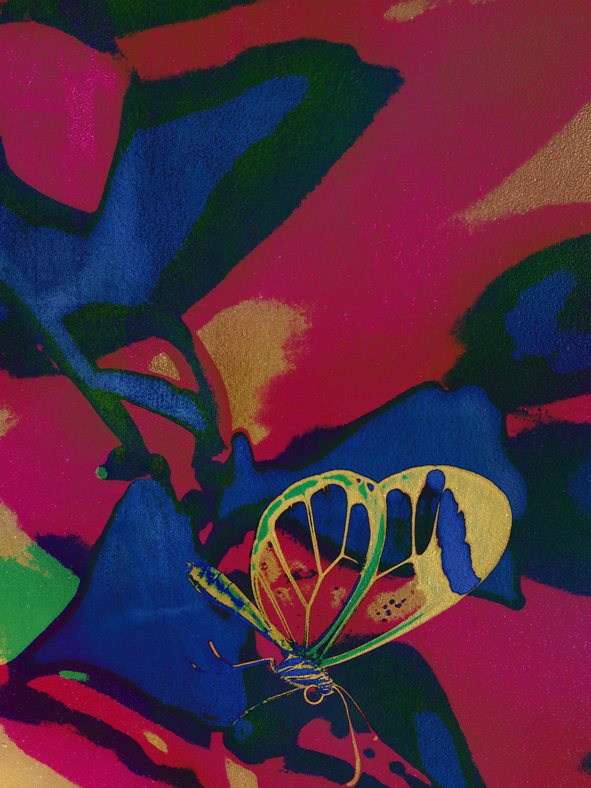 Gold Butterfly Echoes of Transformation explores the fragile interplay between memory and nature, where fleeting moments are preserved as golden echoes. Inspired by butterflies flowers and leaves, this series transforms reality into dreamlike abstractions using digital manipulation color inversion and layered textures.