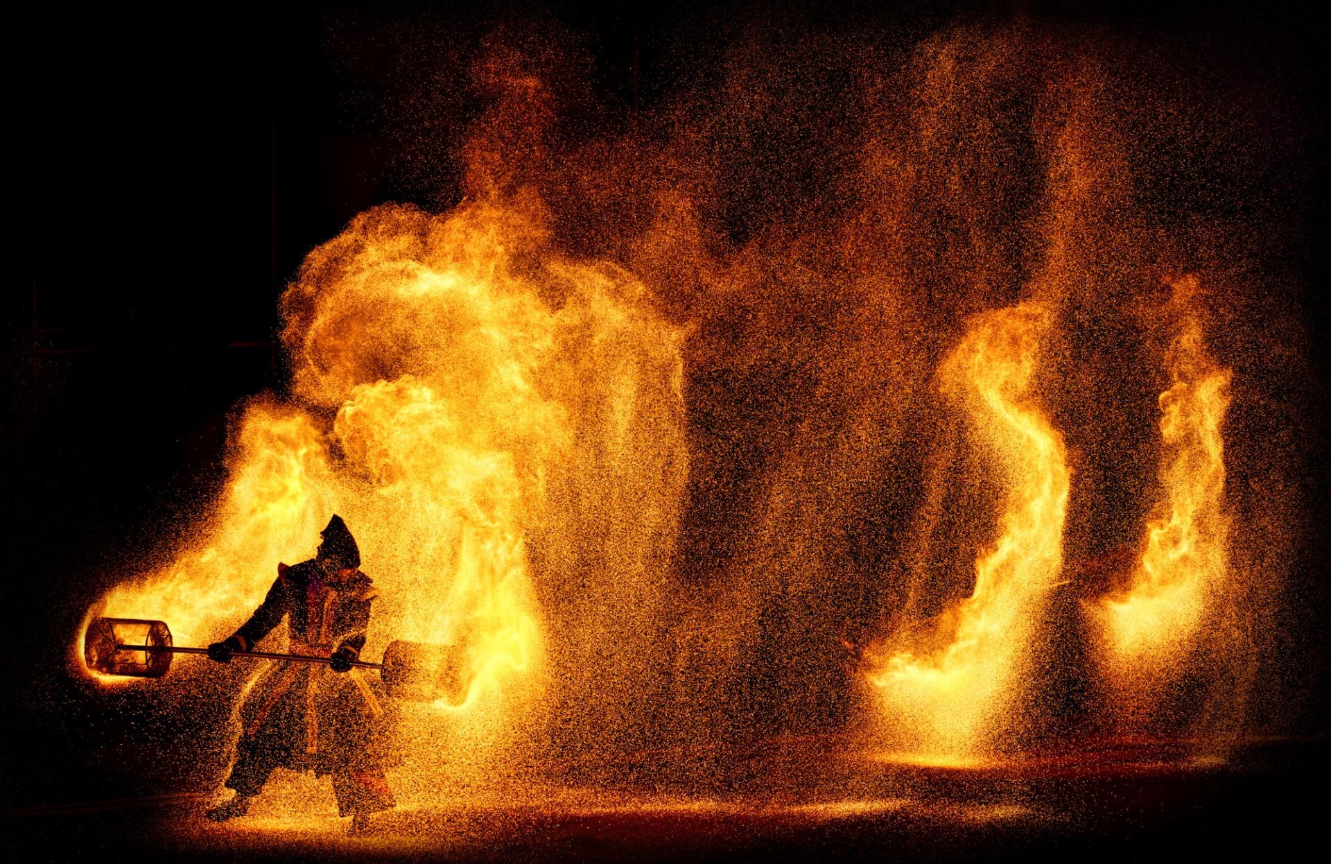 Flames bloom at the dancer's fingertips, and flaming rollers cut through the night sky, shining like shooting stars. Fire dance is not only a visually stunning art, but also carries the flow of ancient beliefs and emotions. From worshiping ancestors to expressing inner emotions, flames bear witness to the enthusiasm and awe in human history. Through the lens, I capture this symphony of light and shadow, showing the unrestrainedness and mystery of fire dance, allowing viewers to feel the beauty of flames and the depth of culture.