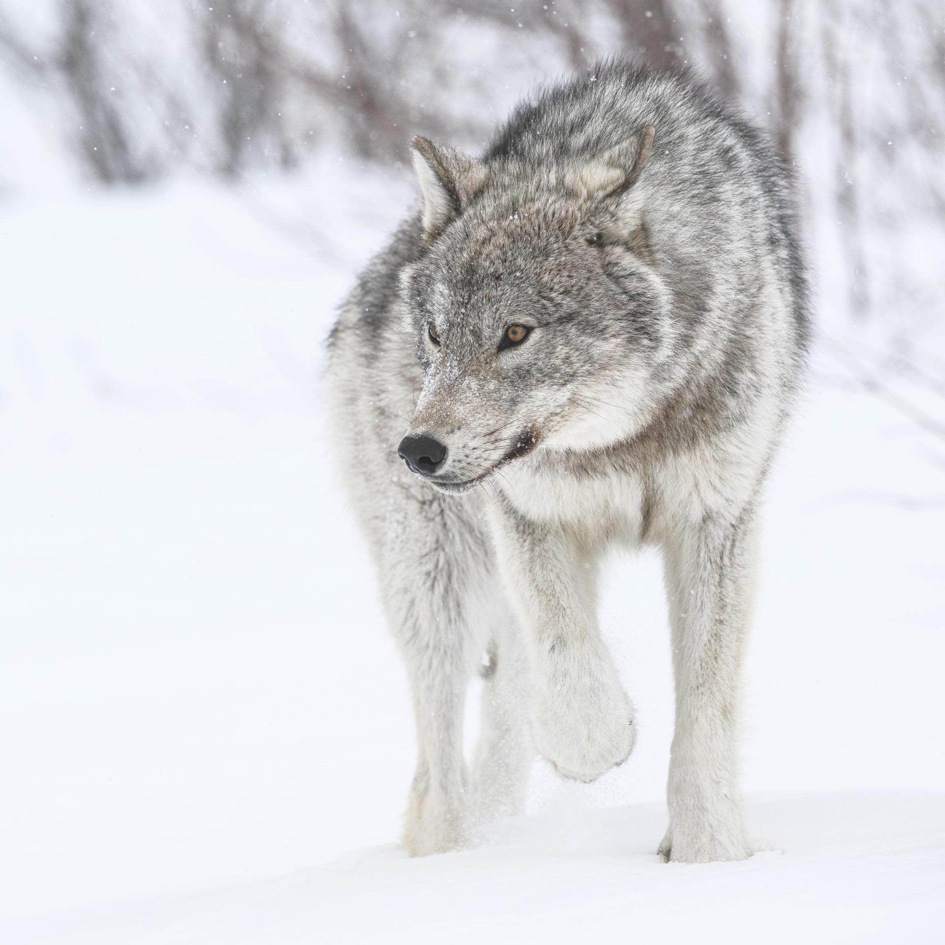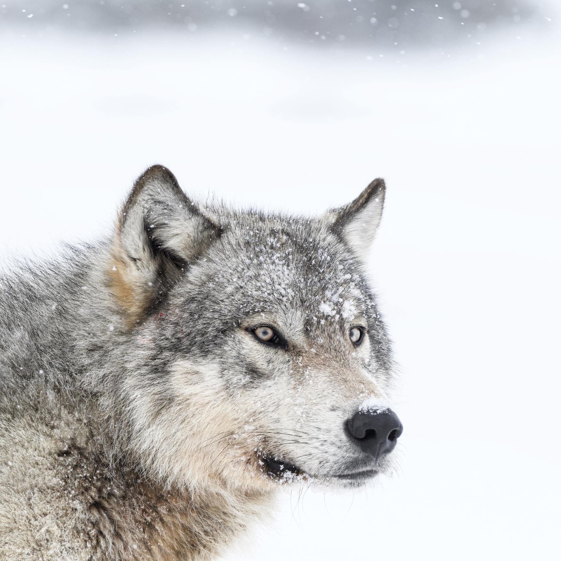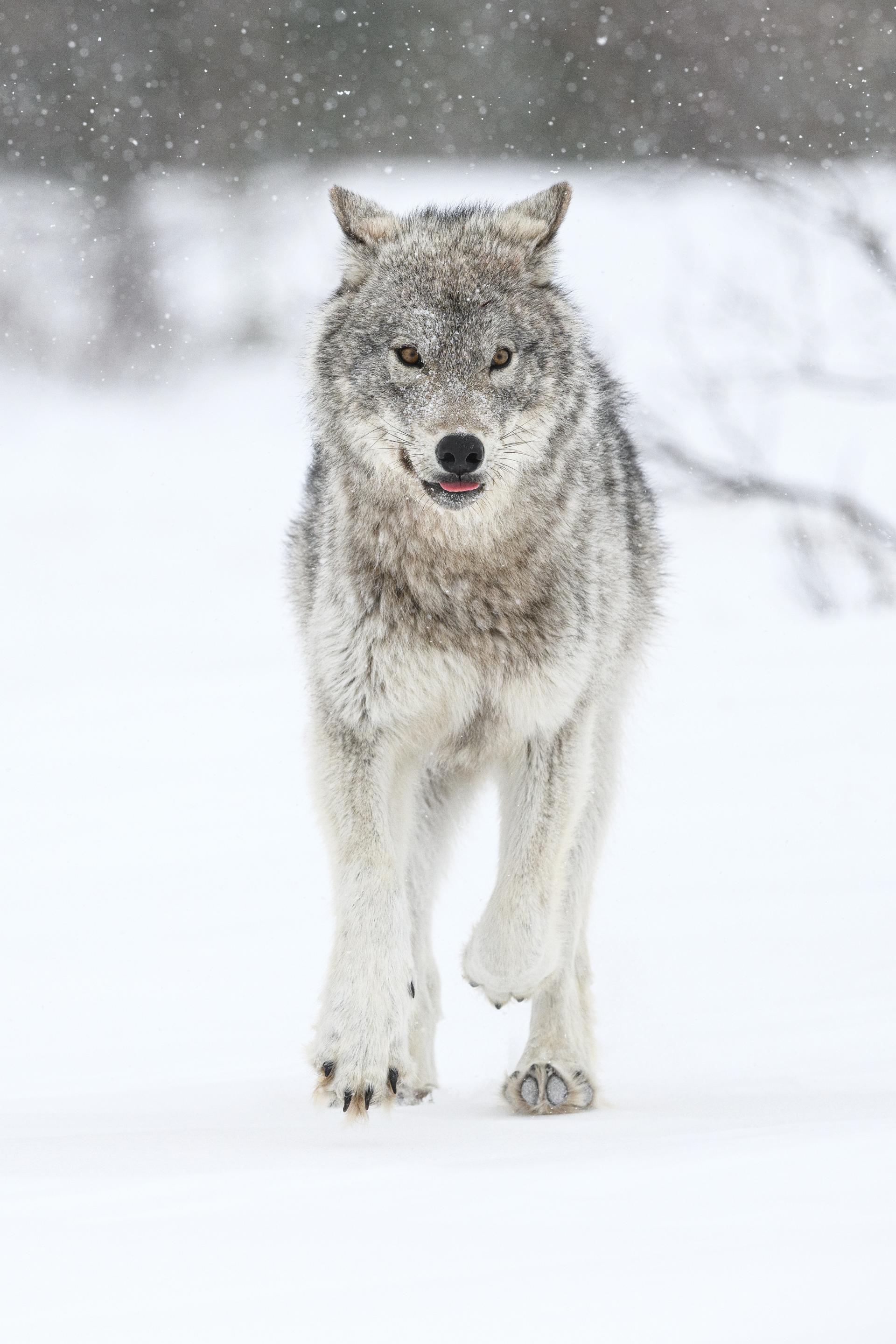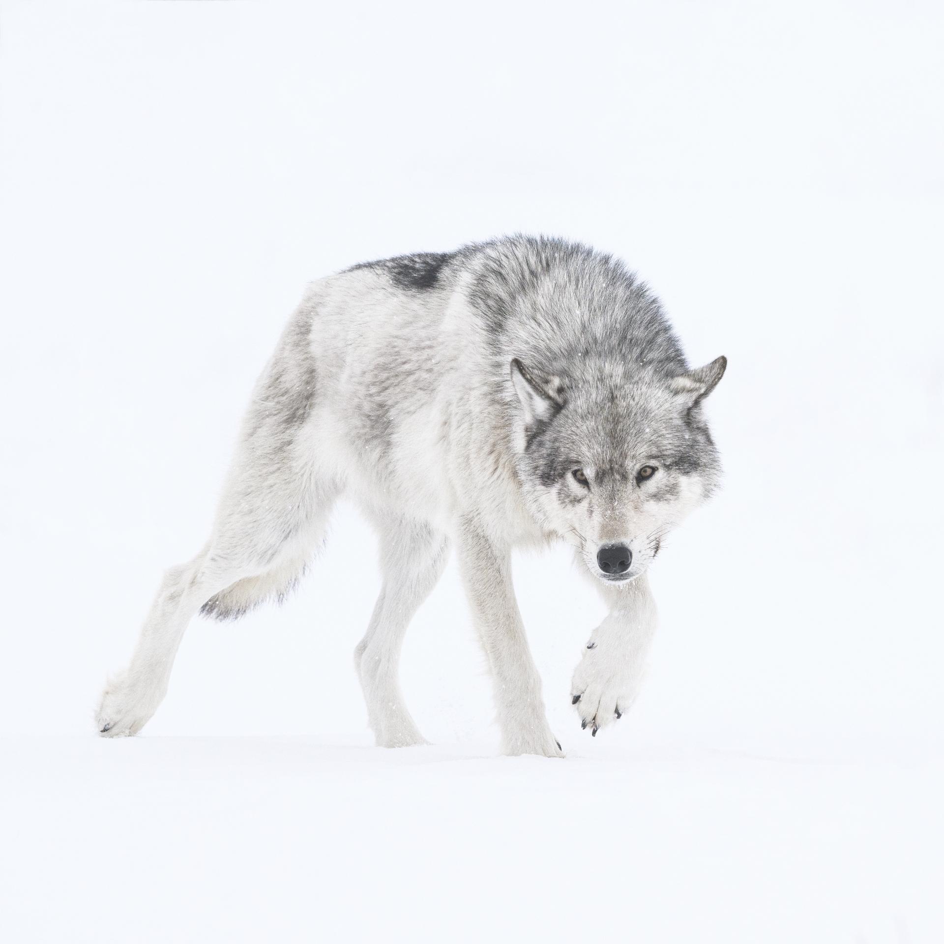 Never photographed with such proximity, without hide or baits, you can fully feel the fascinating power of this wild animal, and the wilderness of Far North Canada in winter under a blizzard storm.