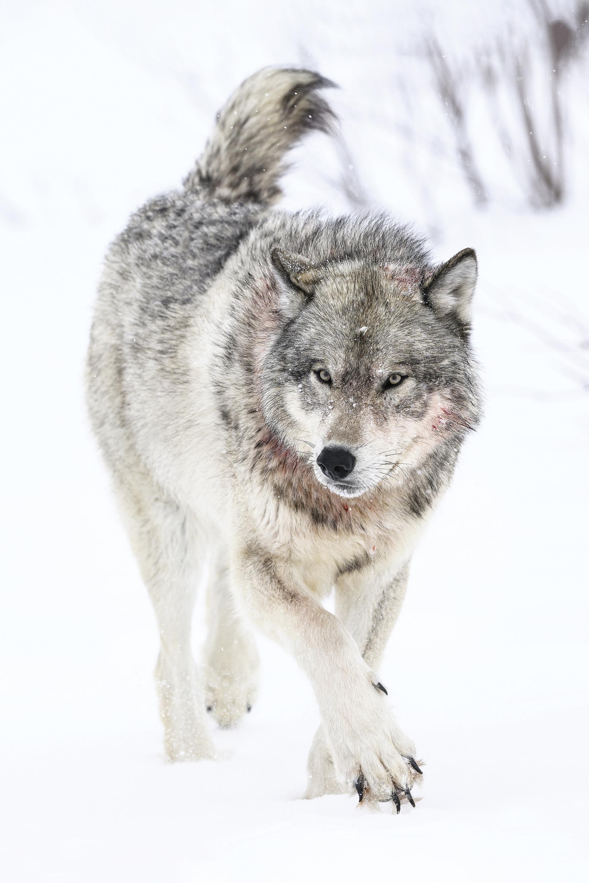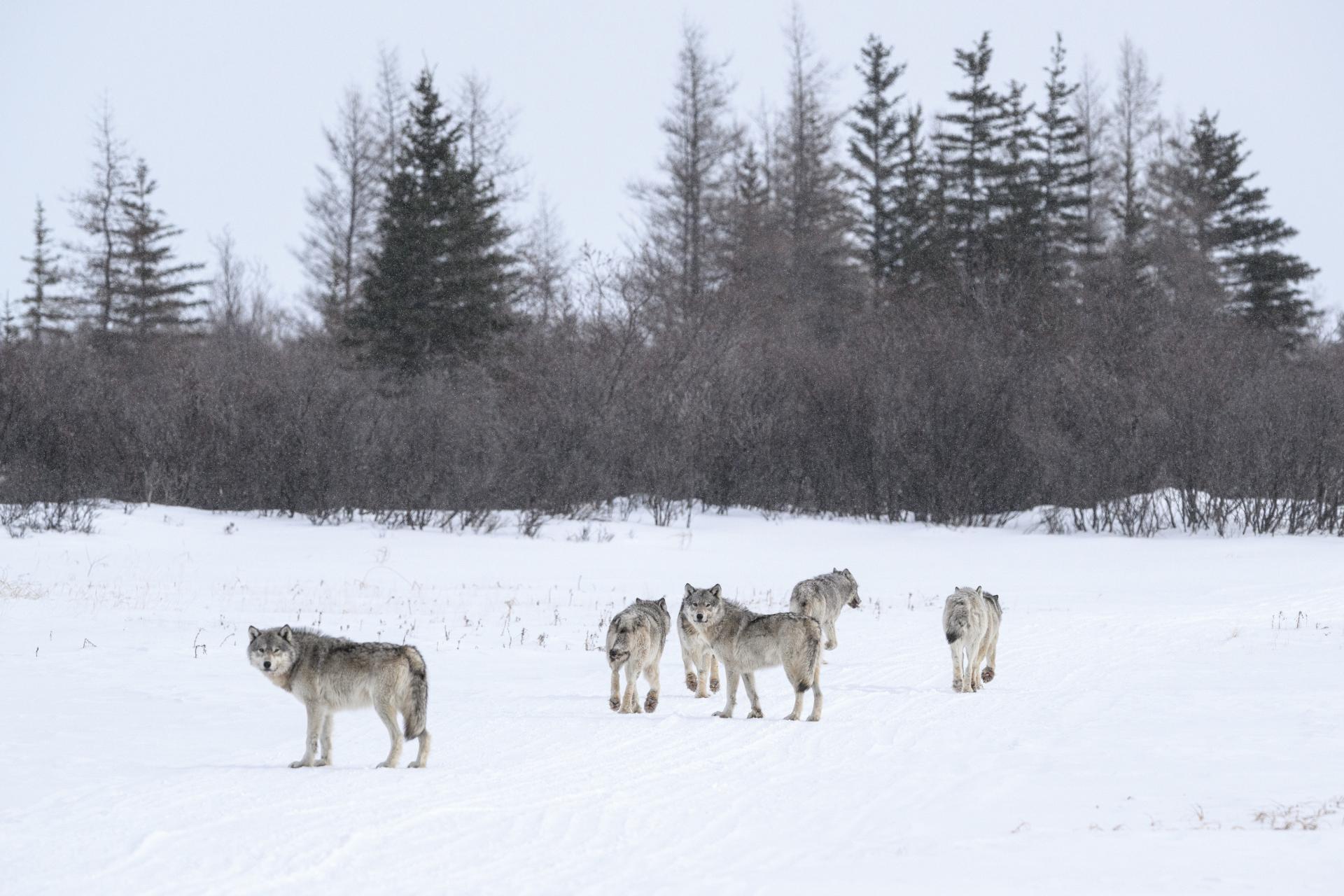 In the wilderness of Canada in winter, far away from any settlements or habitation, wolves are not hunted; on the contrary, they are curious and trusty.