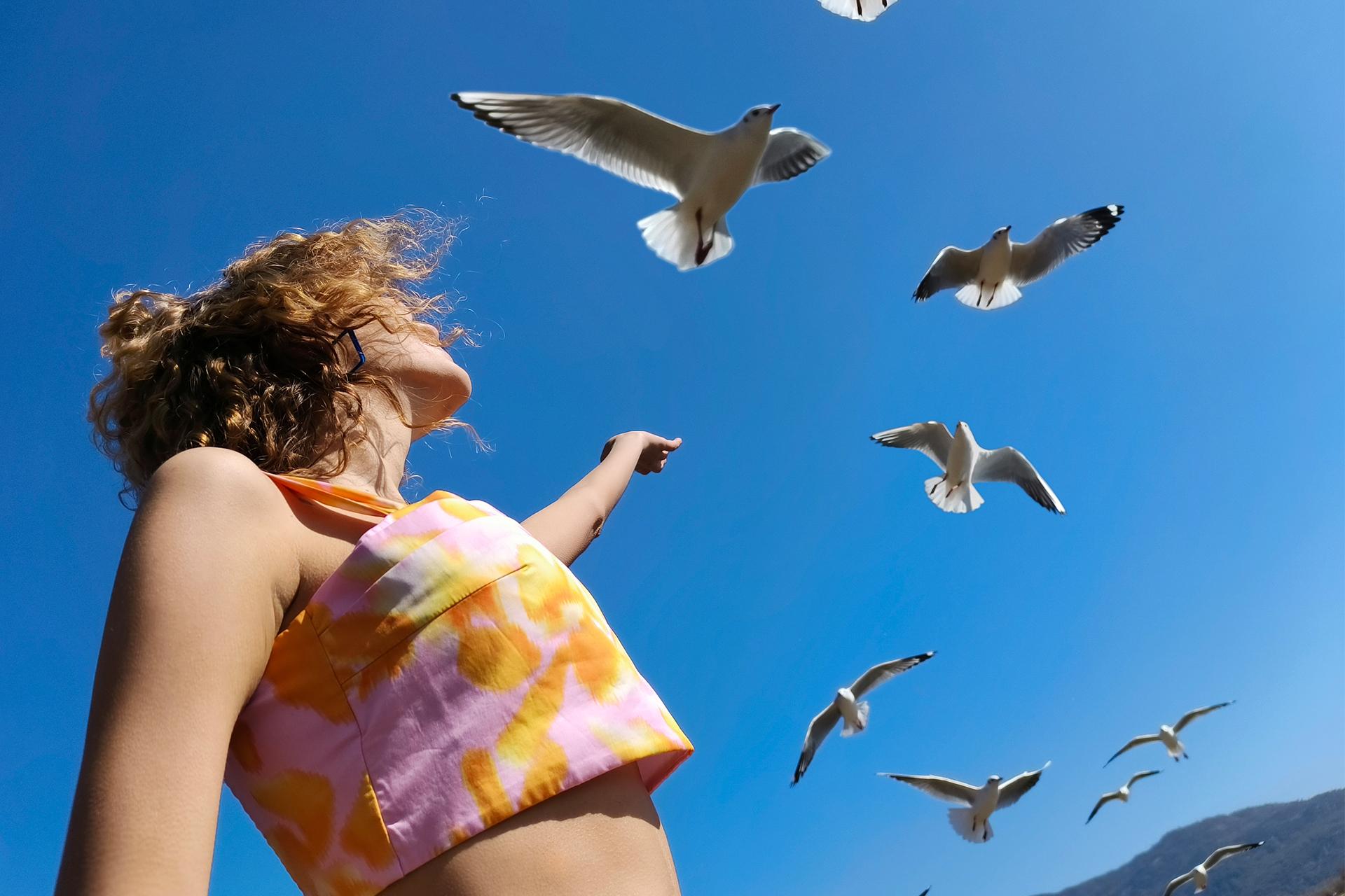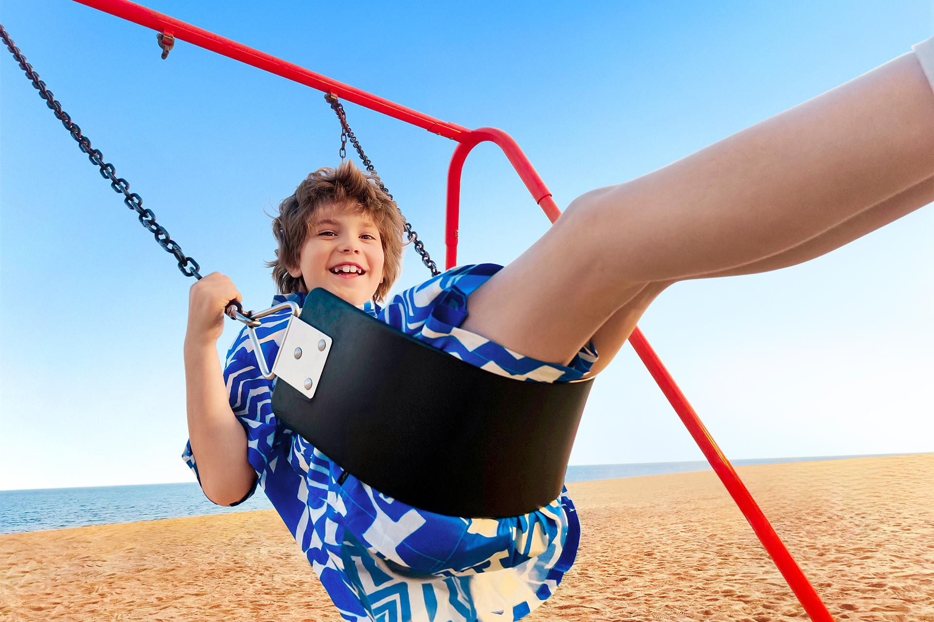 All the photographs were taken on clear, sunny days, making full use of bright, direct sunlight. The bright light and bold perspectives sharpen outlines and enhance three-dimensionality while vividly bringing the photographs to life. The scenes with saturated hues—the deep blue sea, the vibrant green grass, the brightly colored clothing—come together to create a visual world filled with hope and joy, perfectly echoing the themes of “vitality” and “optimism.”